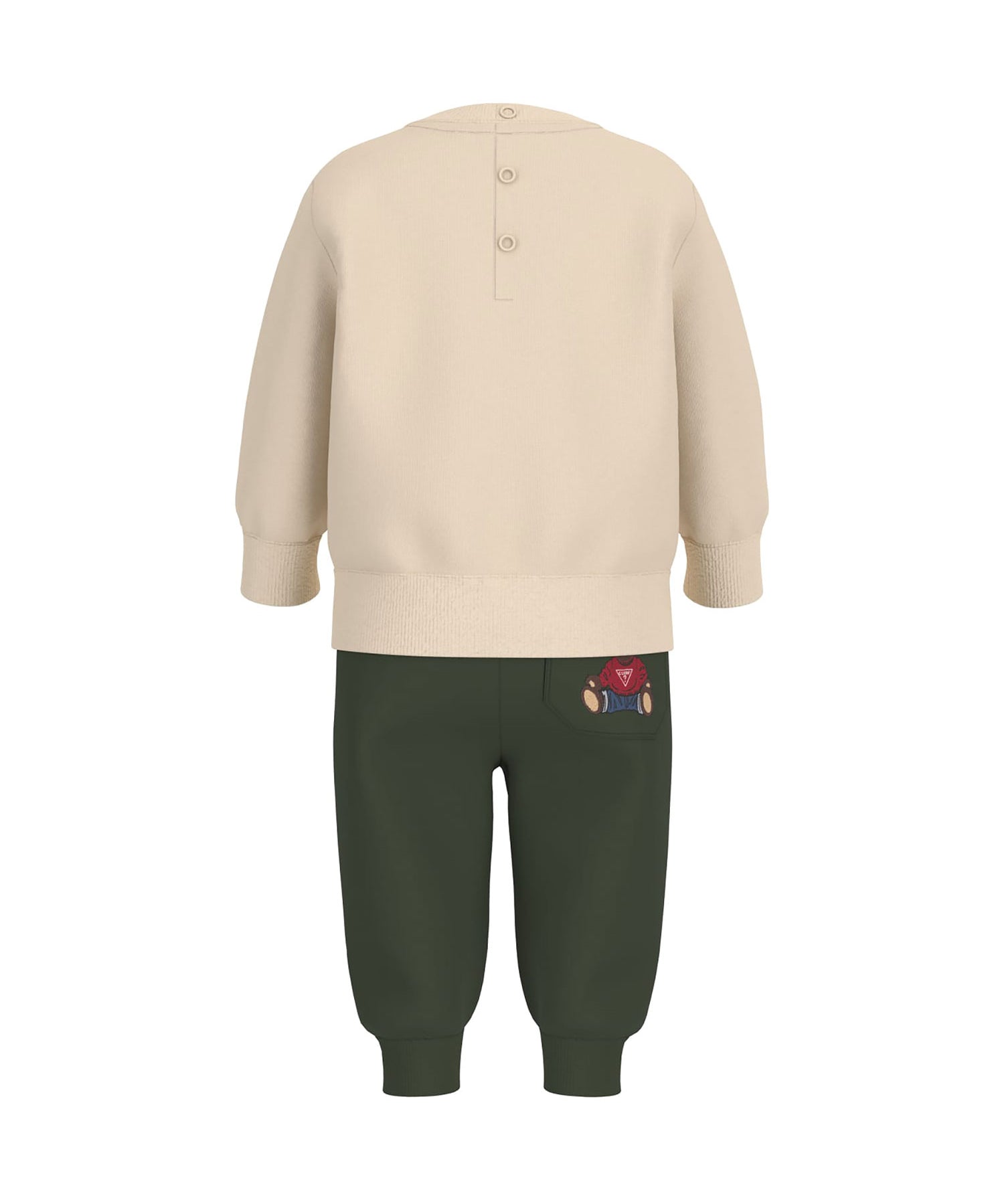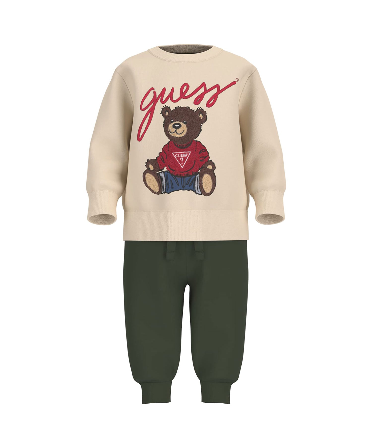Set tuta felpa con patch teddy e jogger bianco/verde