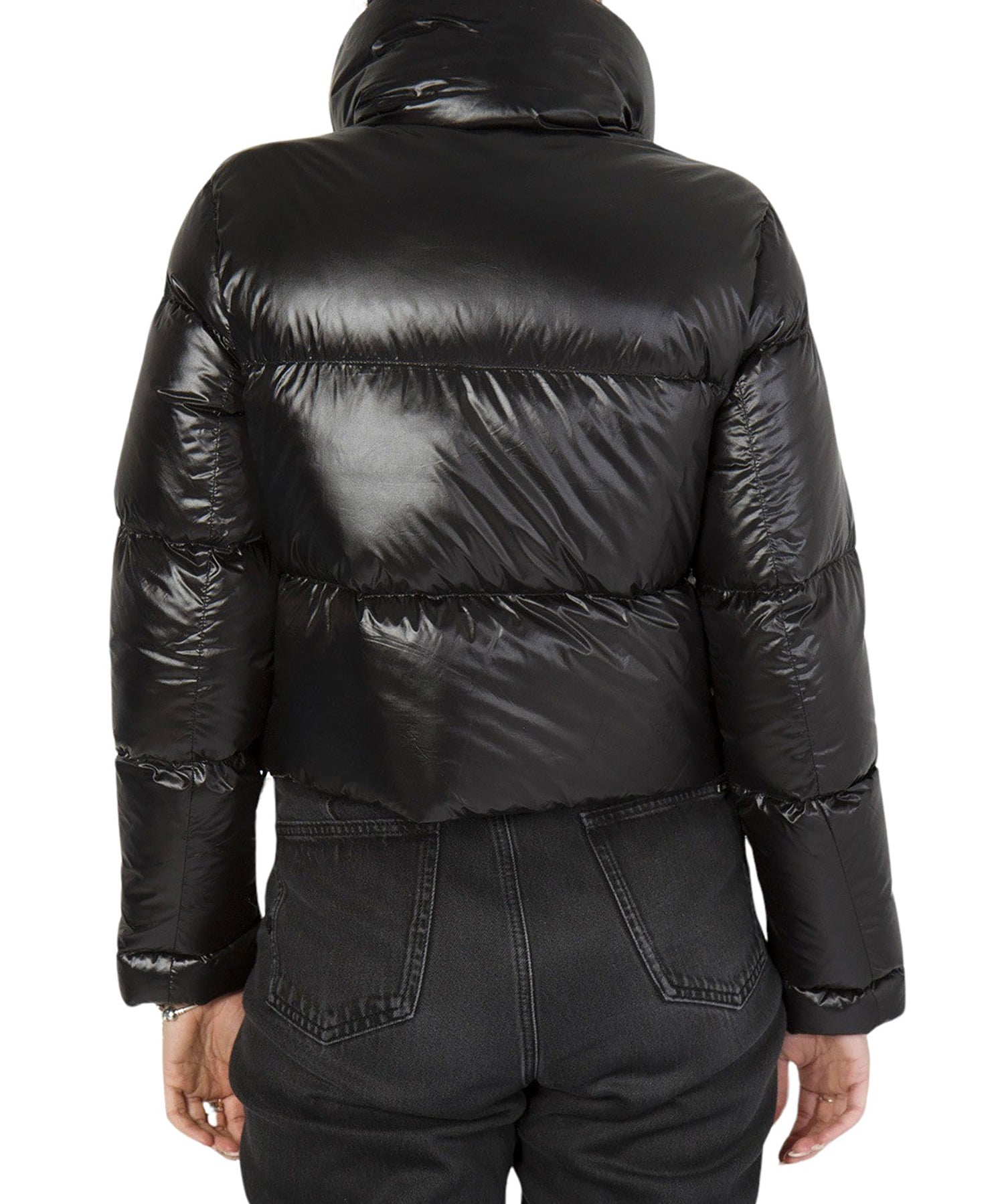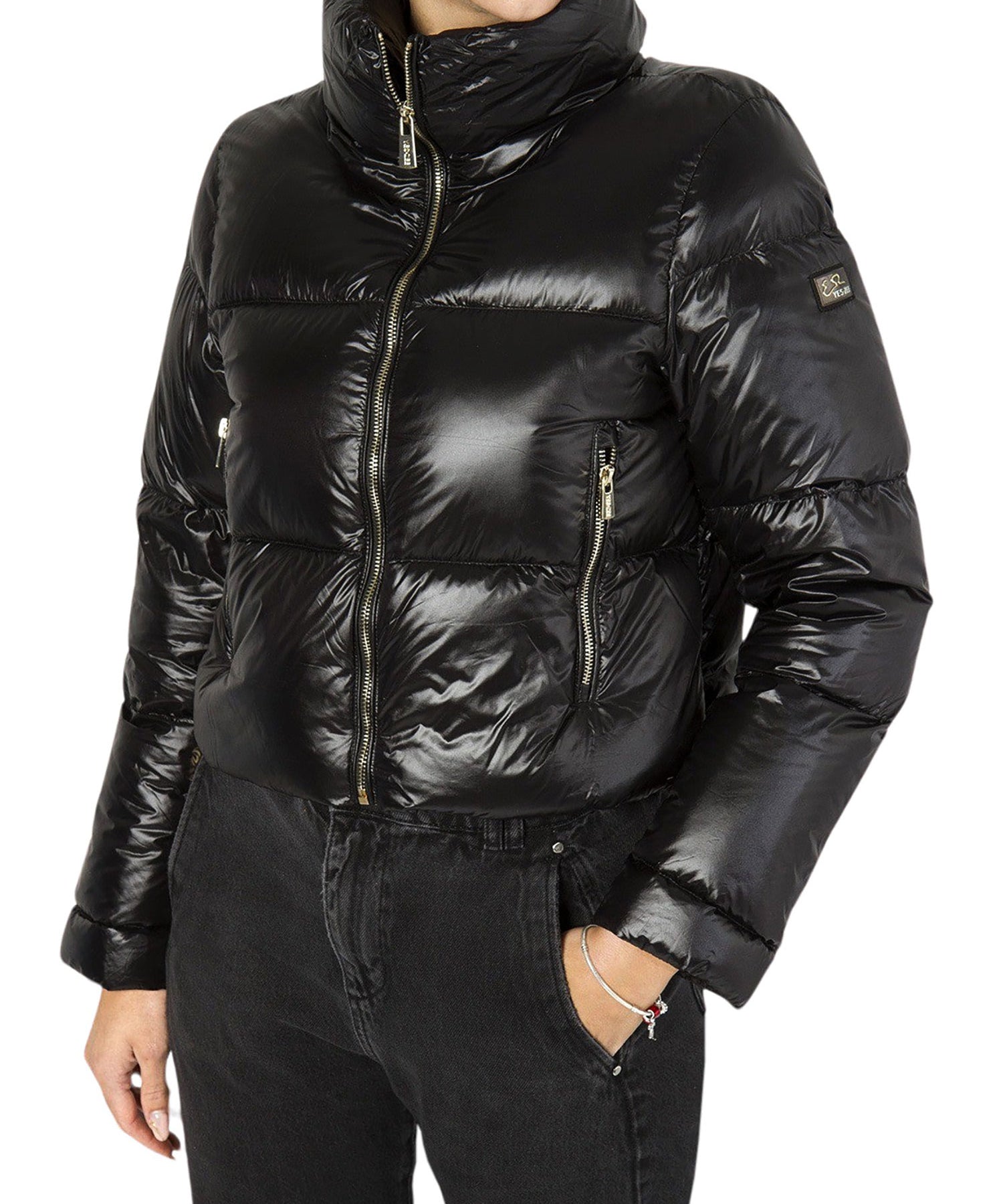 Giubbino corto Yes Zee donna con zip e cappuccio con inserto trapuntato e ecopelle nero