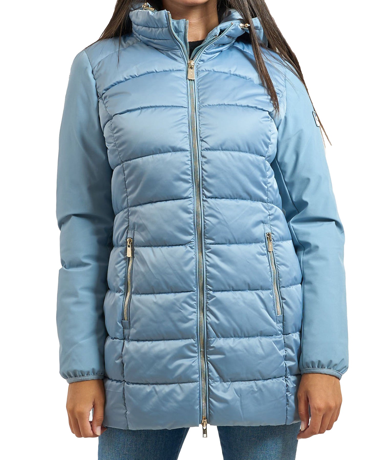 Piumino parka Yes Zee donna con cappuccio e finto gilet removibile blu