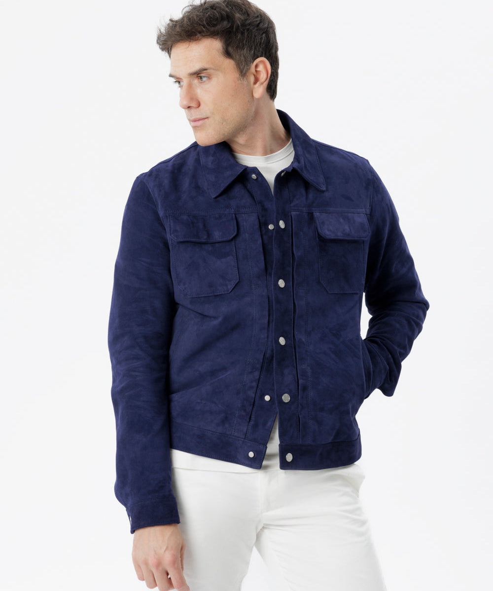 Giubbino in pelle scamosciata blu