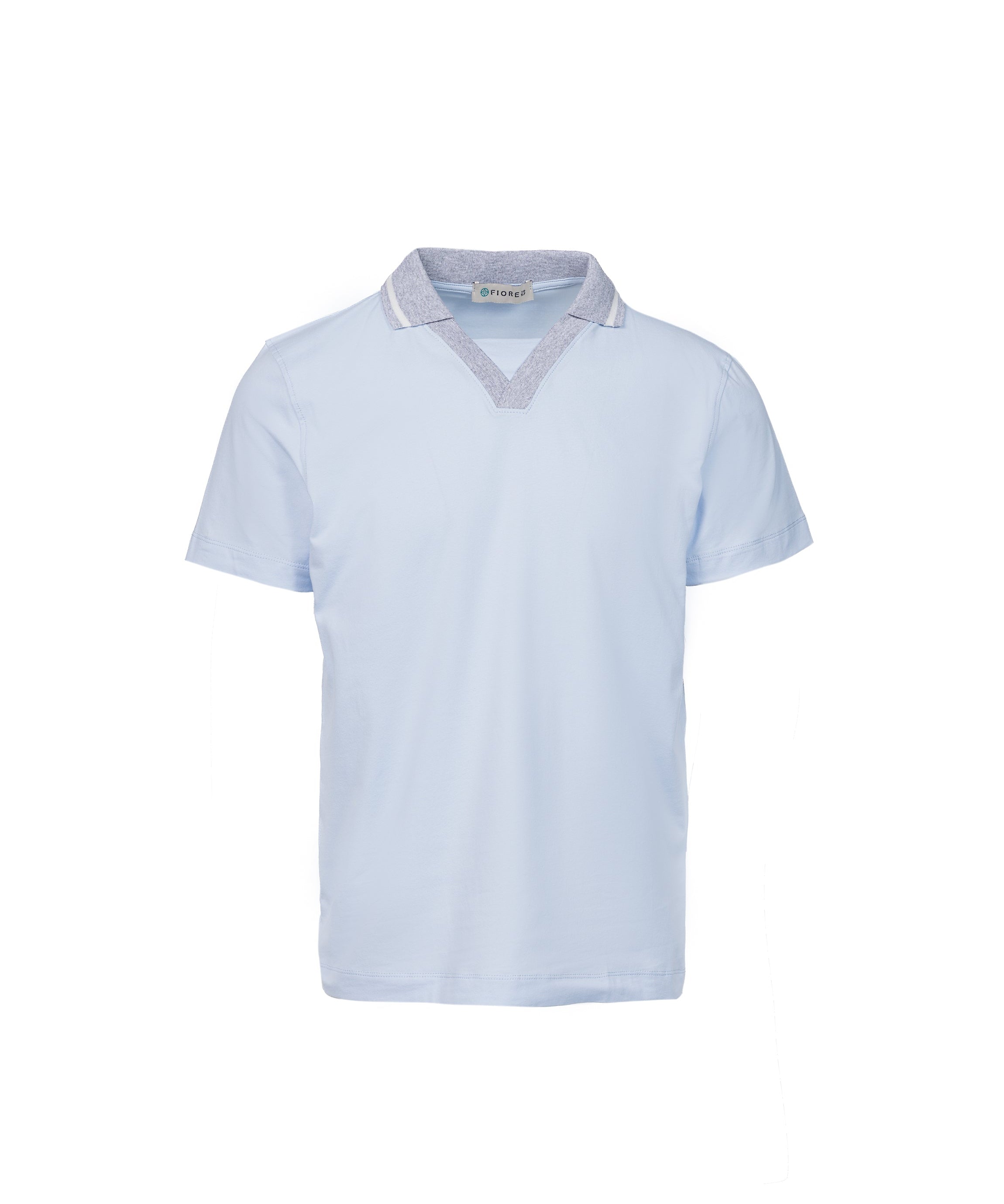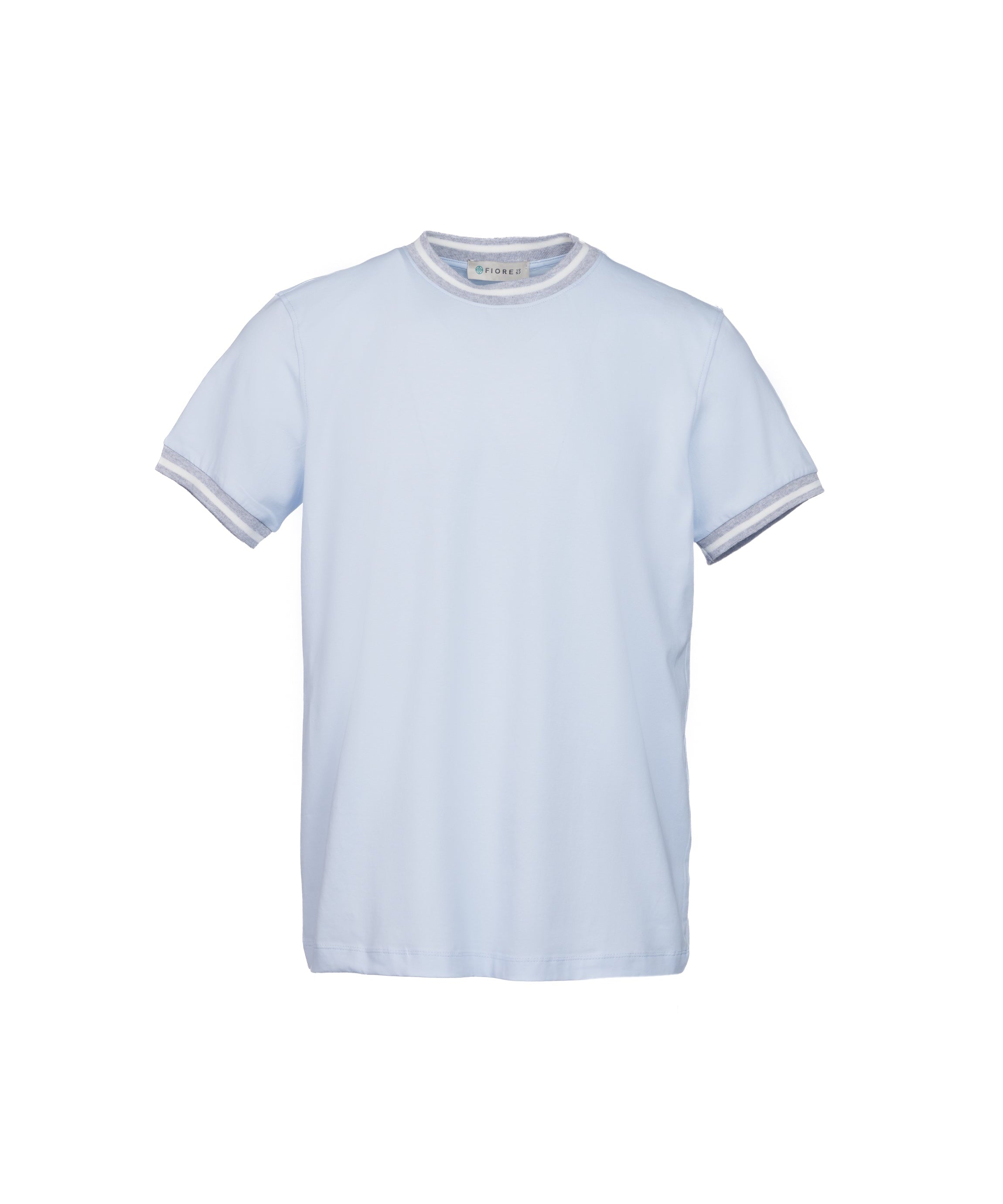 T-shirt in cotone elasticizzato con collo a costina celeste