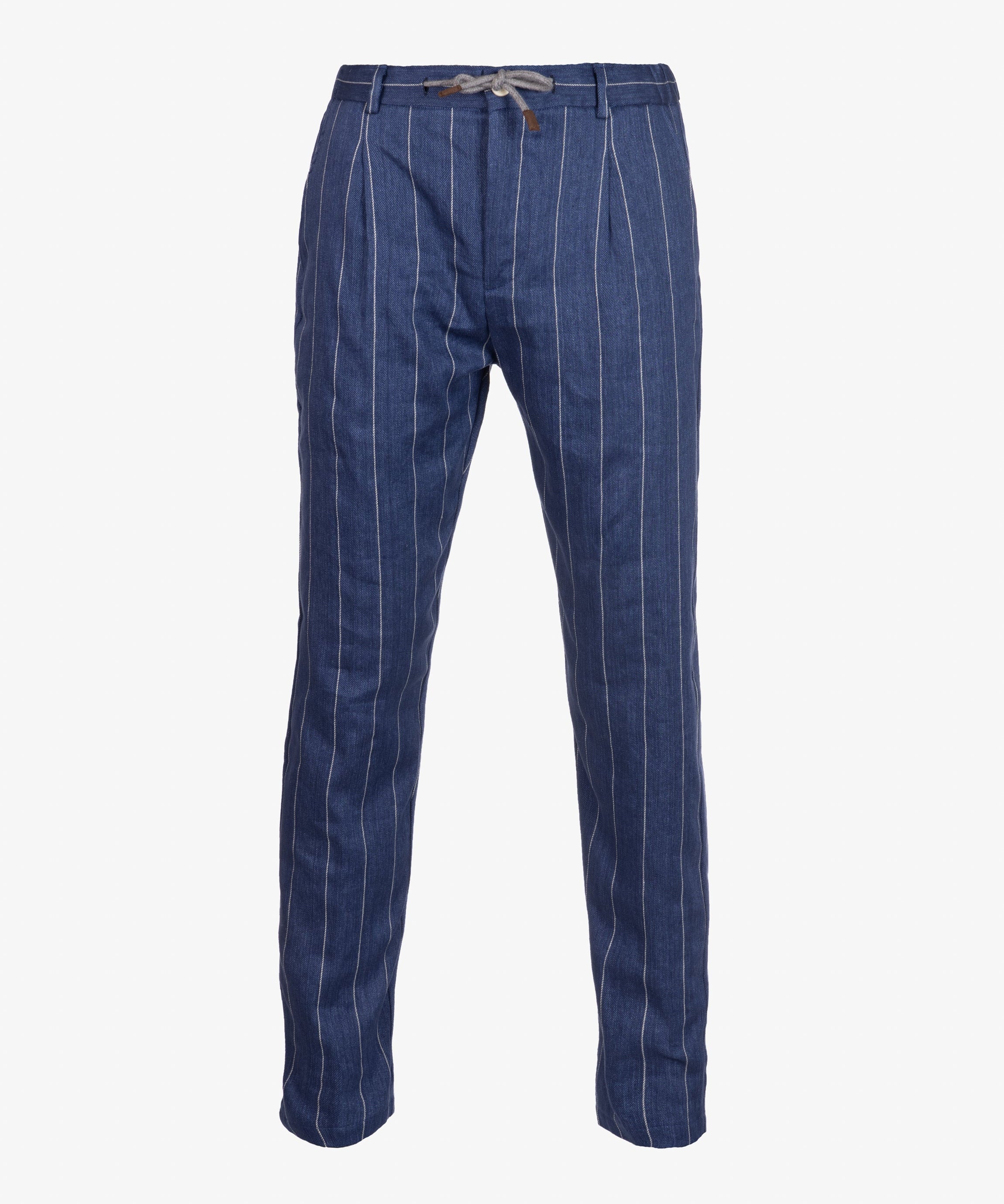 Pantalone Amalfi in lino e cotone con coulisse gessato bluette