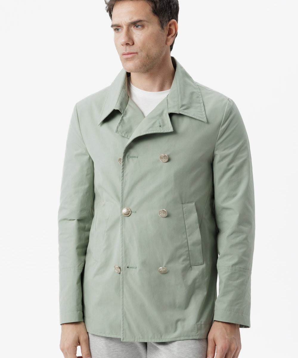 Caban doppiopetto in cotone techno verde
