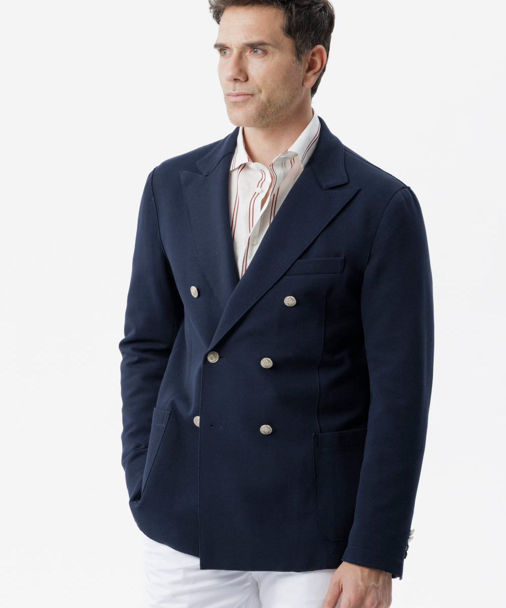 Giacca Siracusa doppiopetto in cotone stretch con taglio vivo e tasche applicate blu