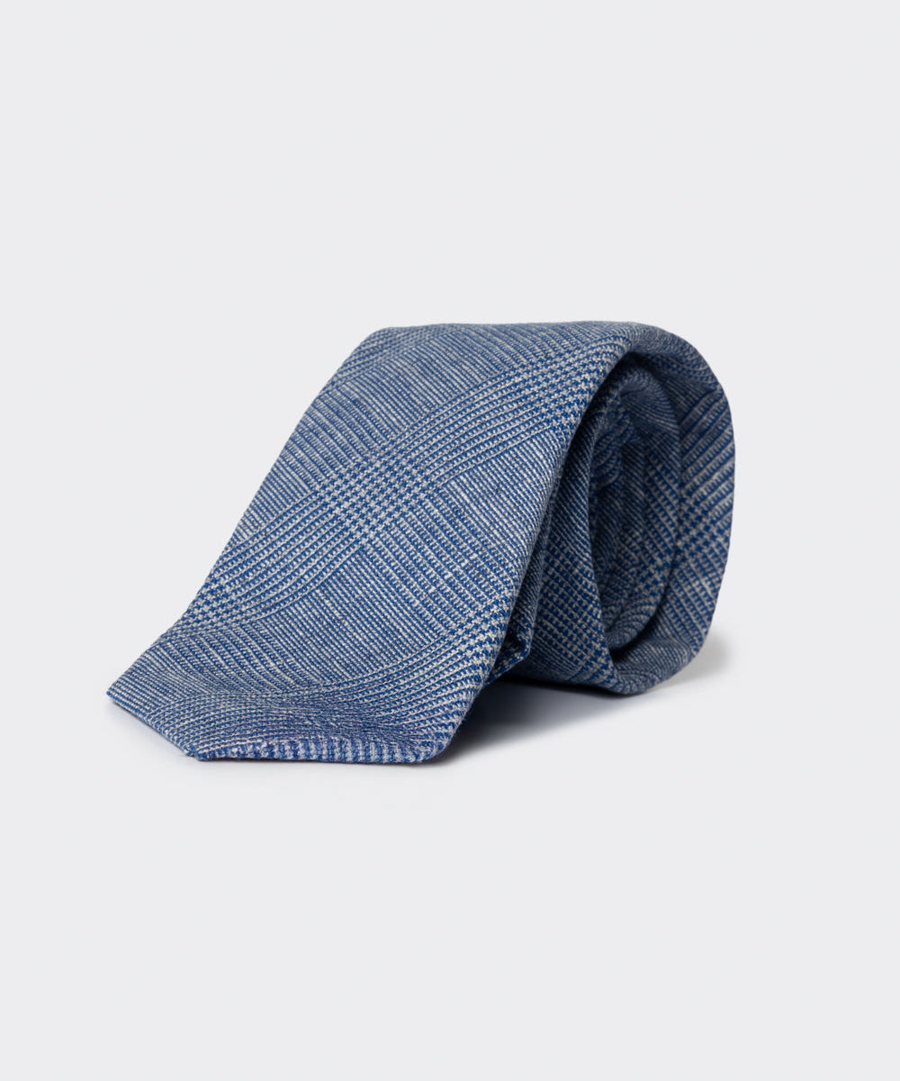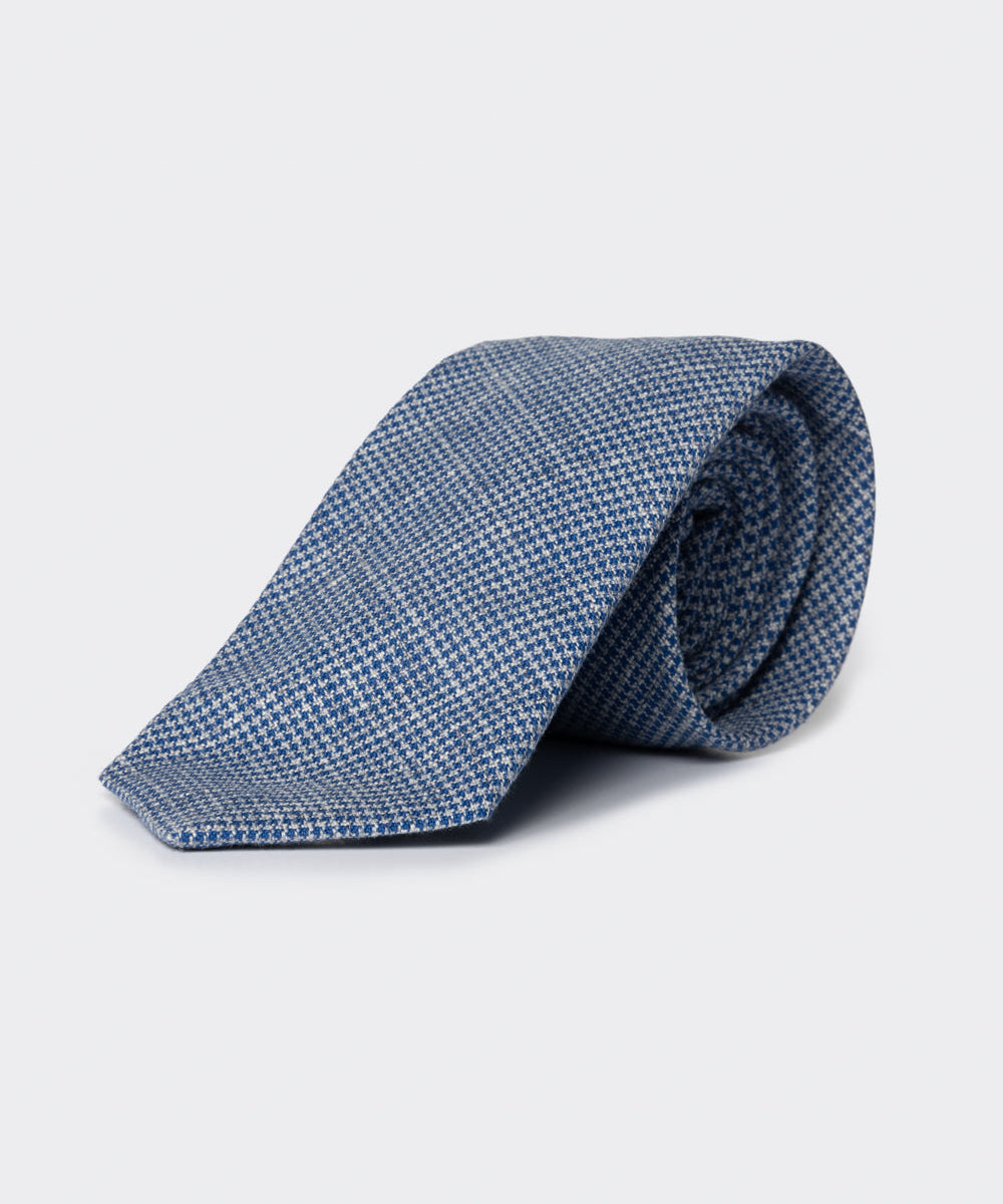 Cravatta in cotone con motivo principe di Galles blu