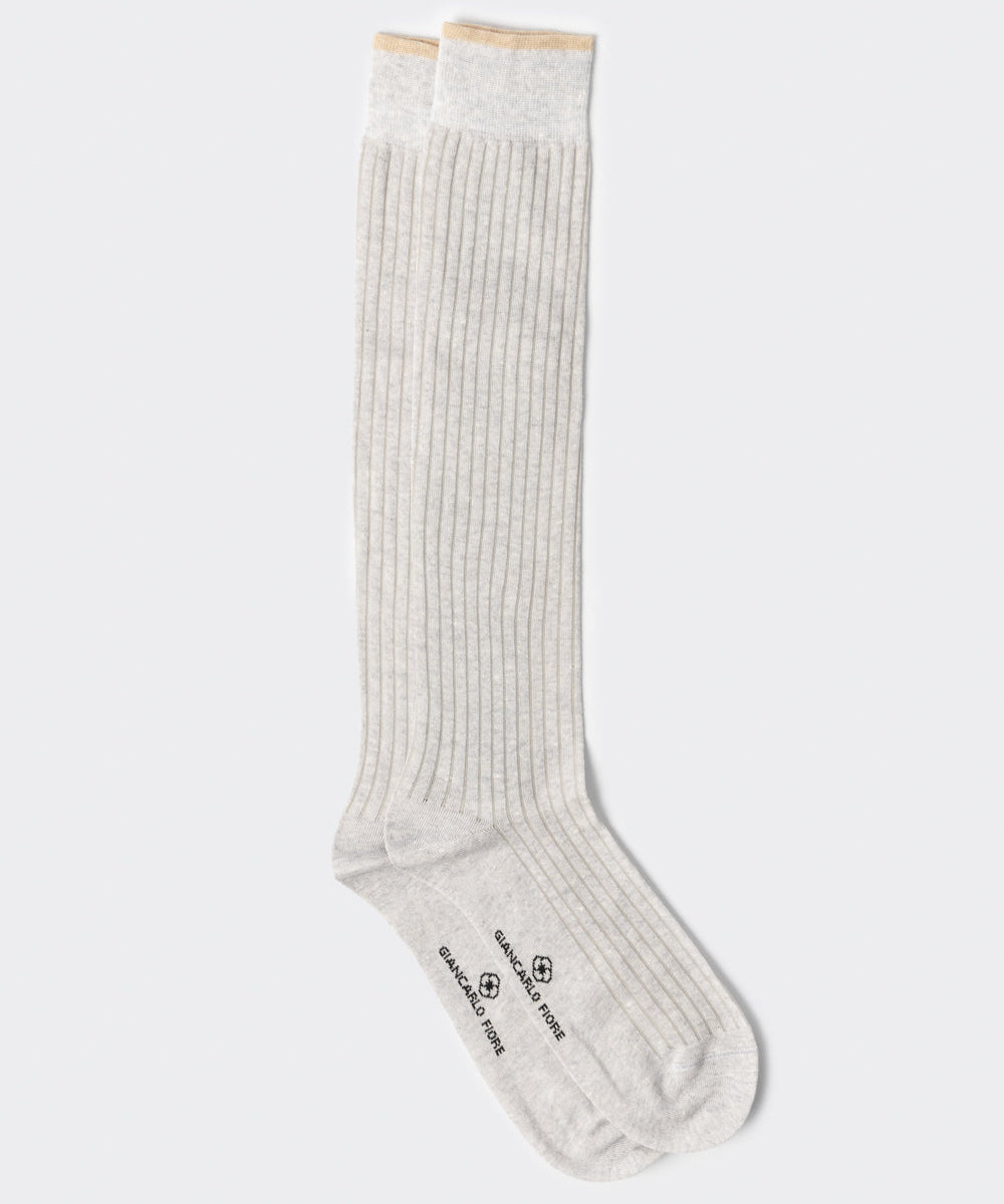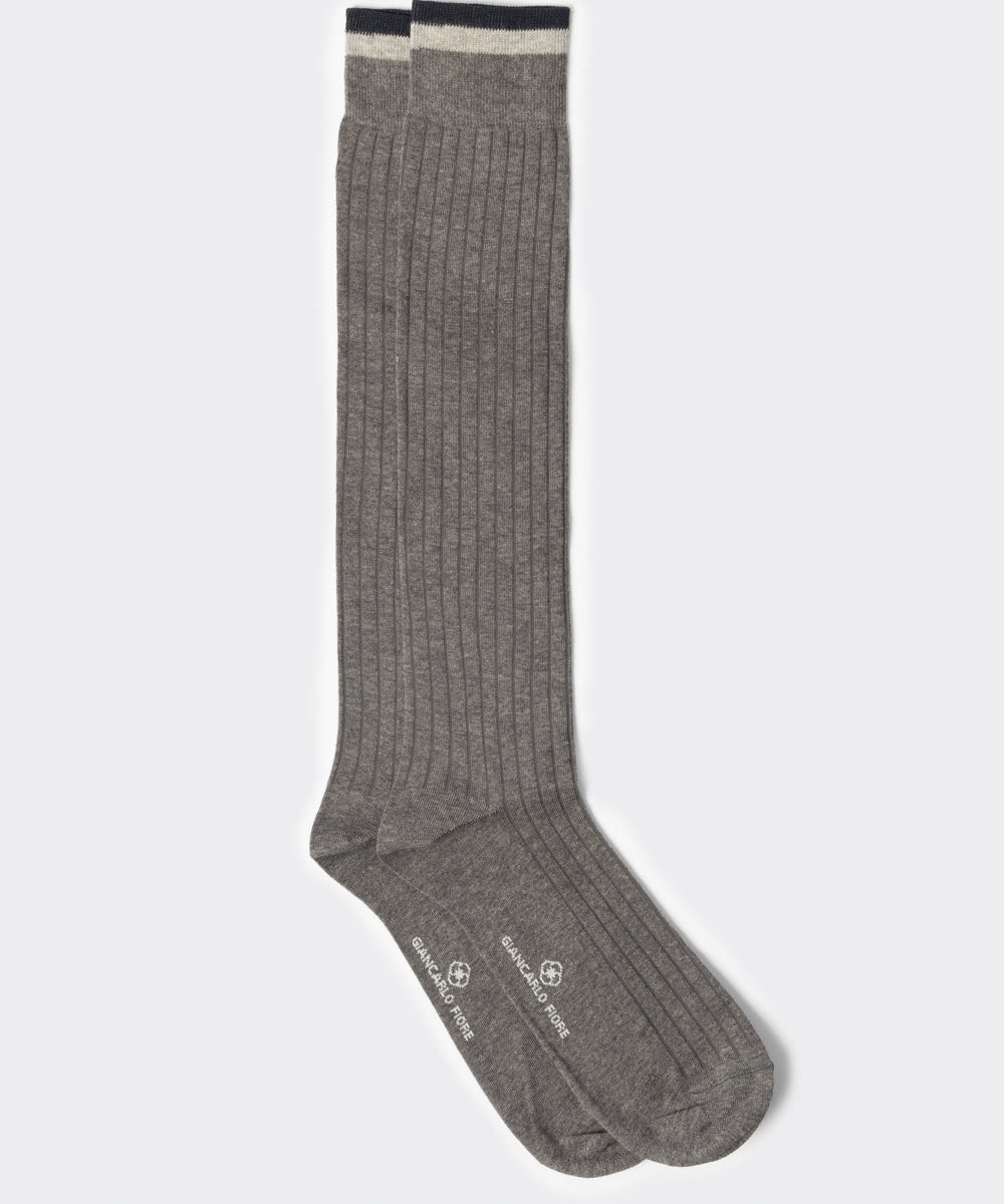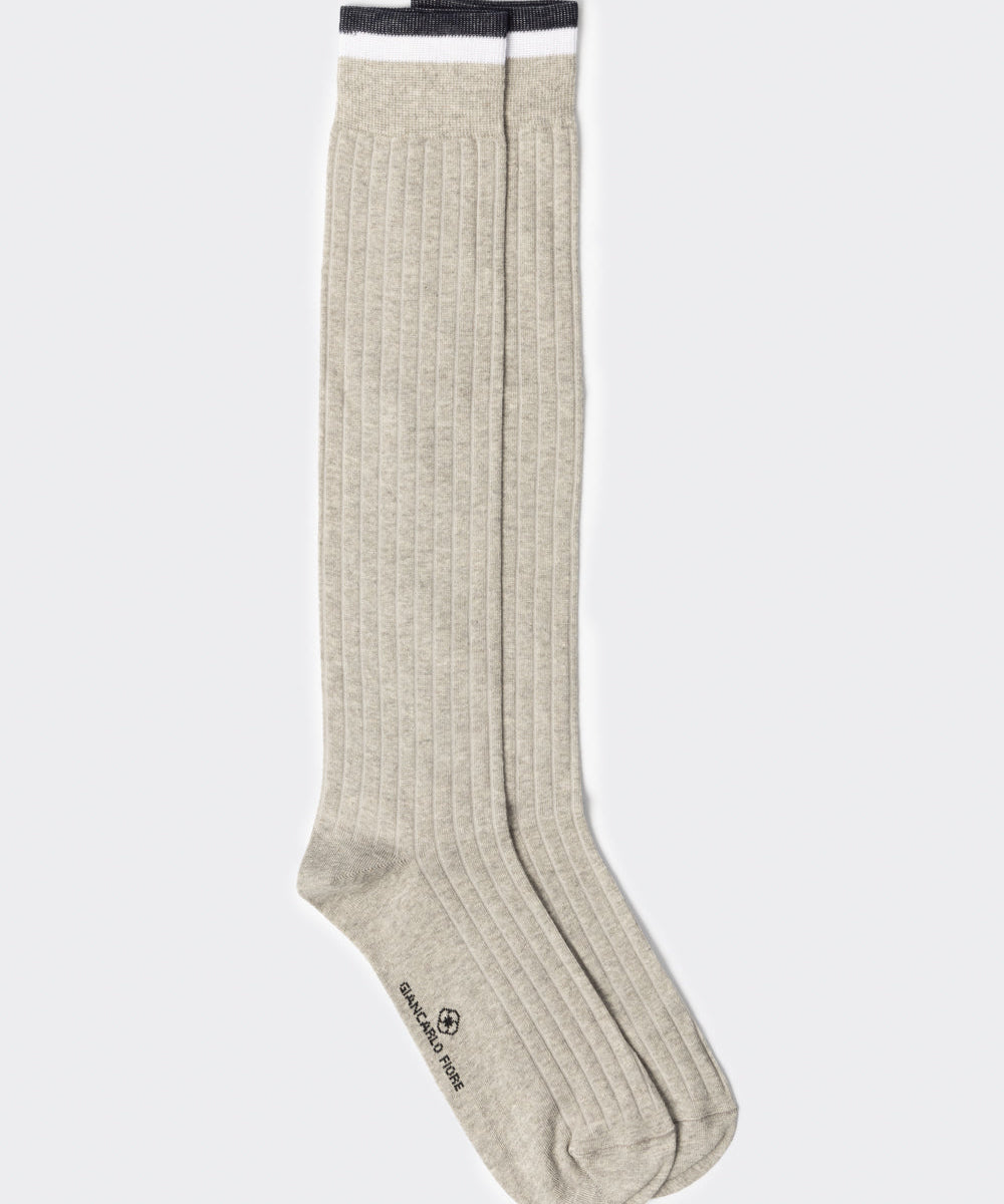 Calza lunga a coste con profili a contrasto grigio chiaro