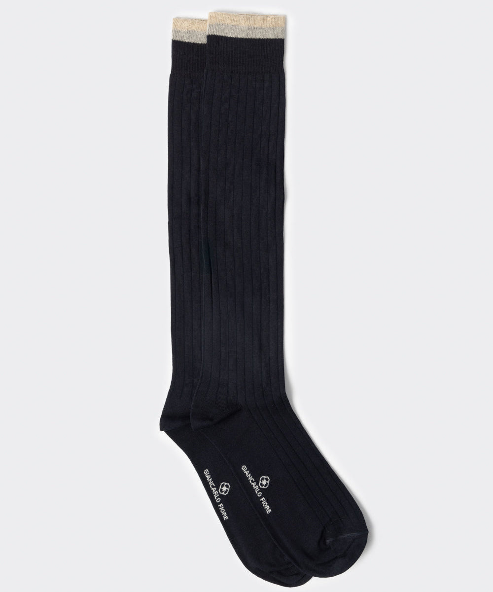 Calza lunga a coste con profili a contrasto blu