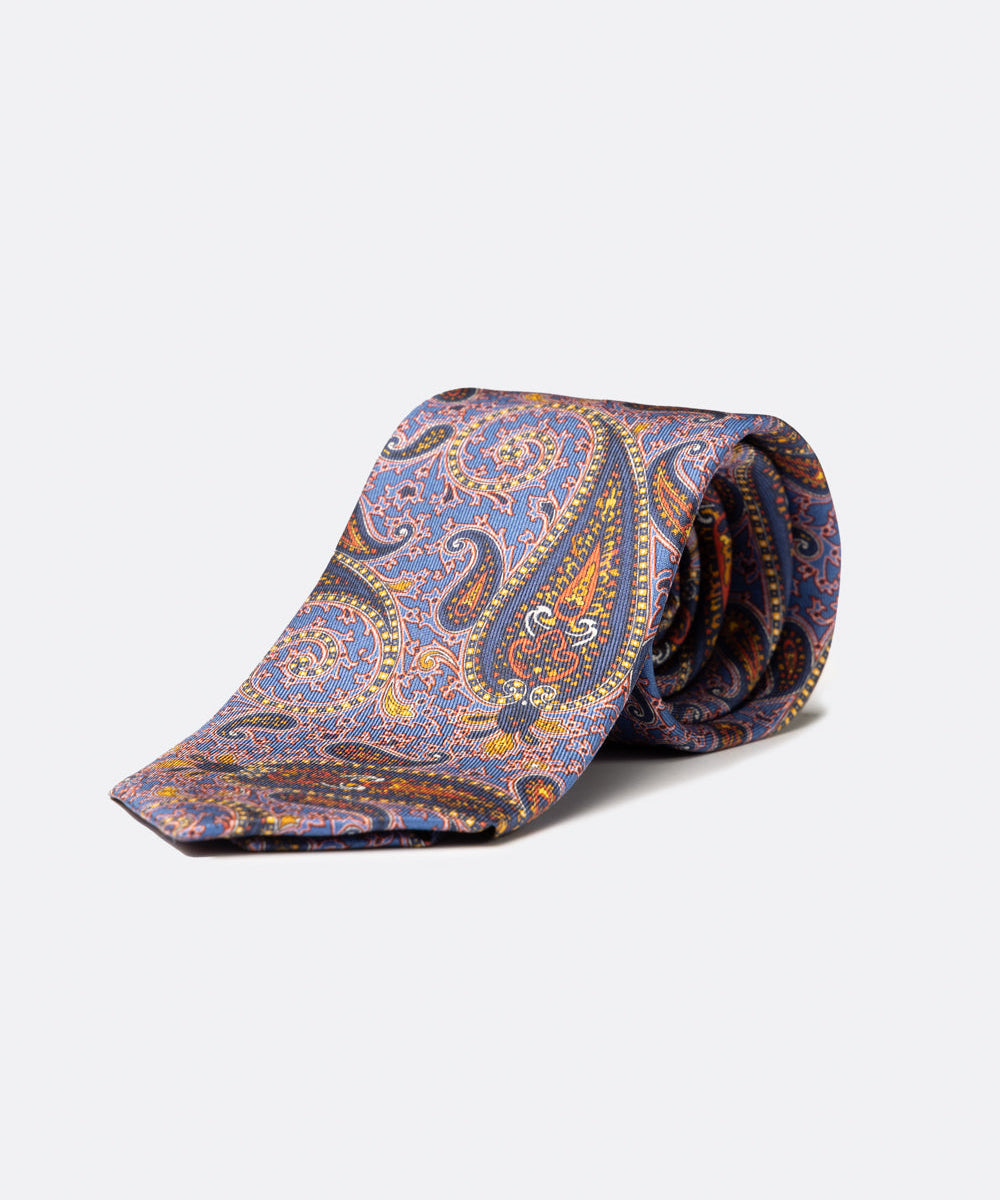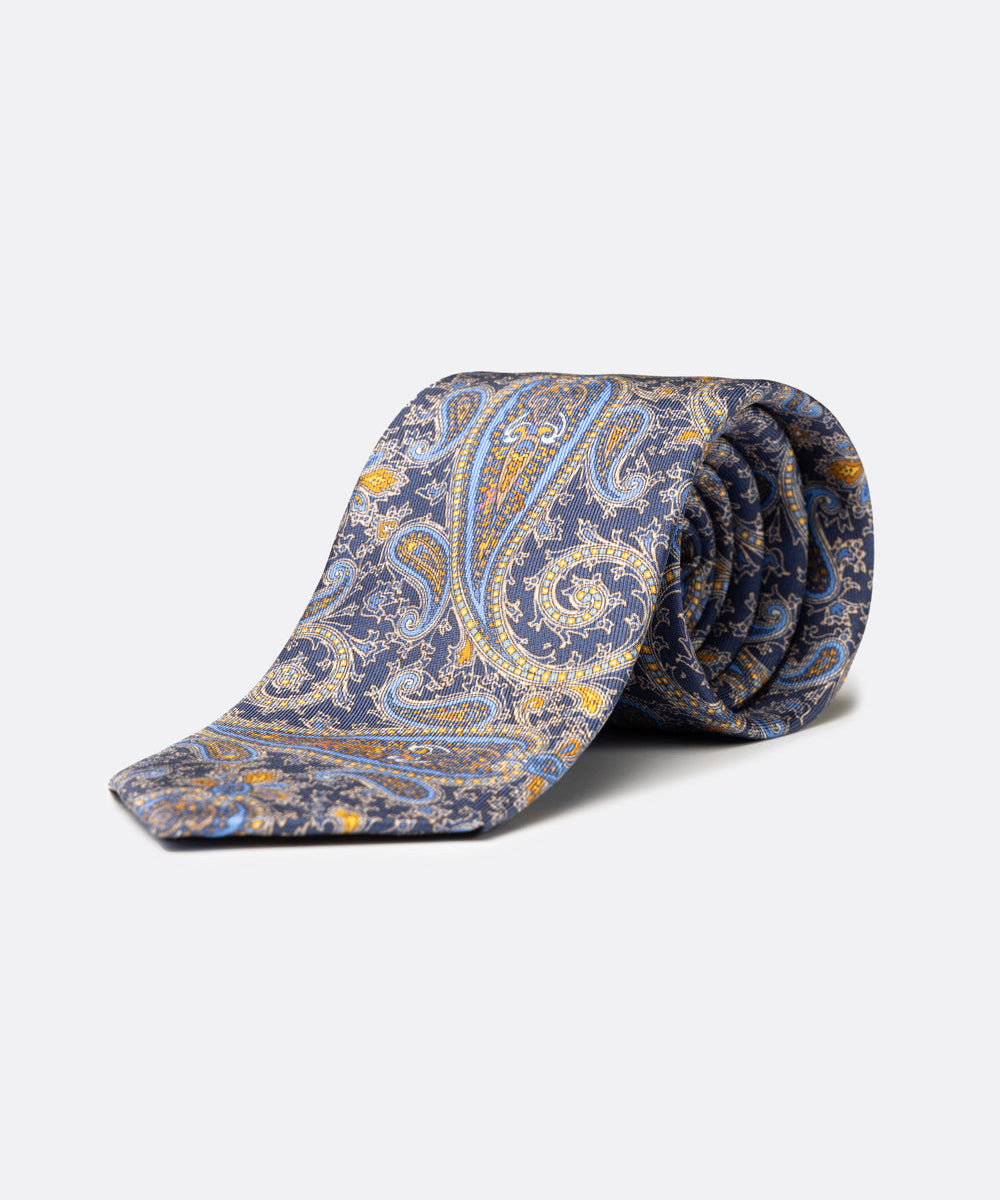 Cravatta in seta con stampa cachemire blu