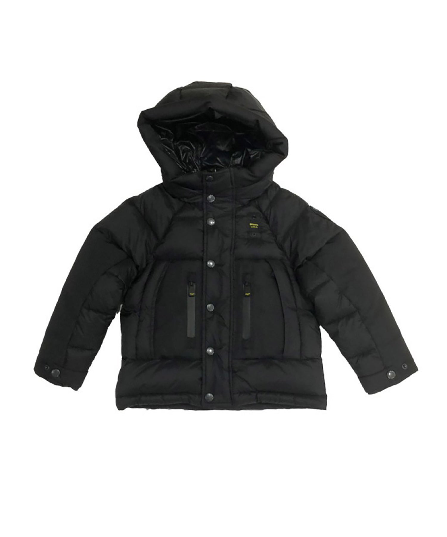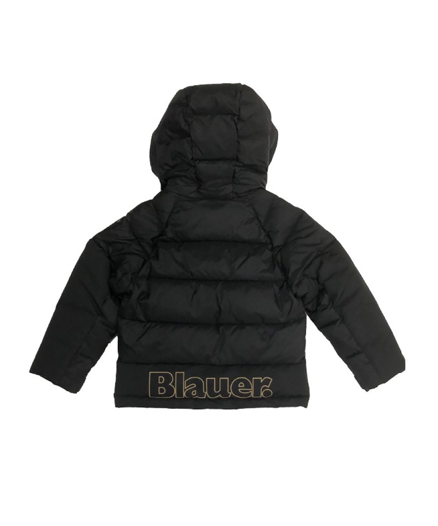 Piumino zip con cappuccio con logo posteriore blu