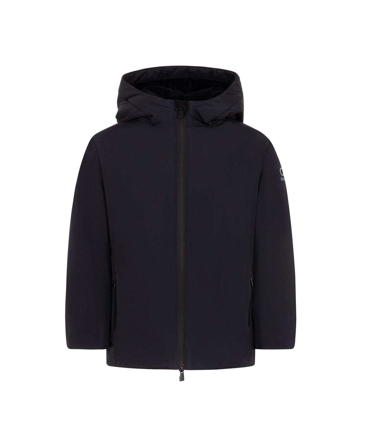 Piumino zip con cappuccio con logo posteriore nero