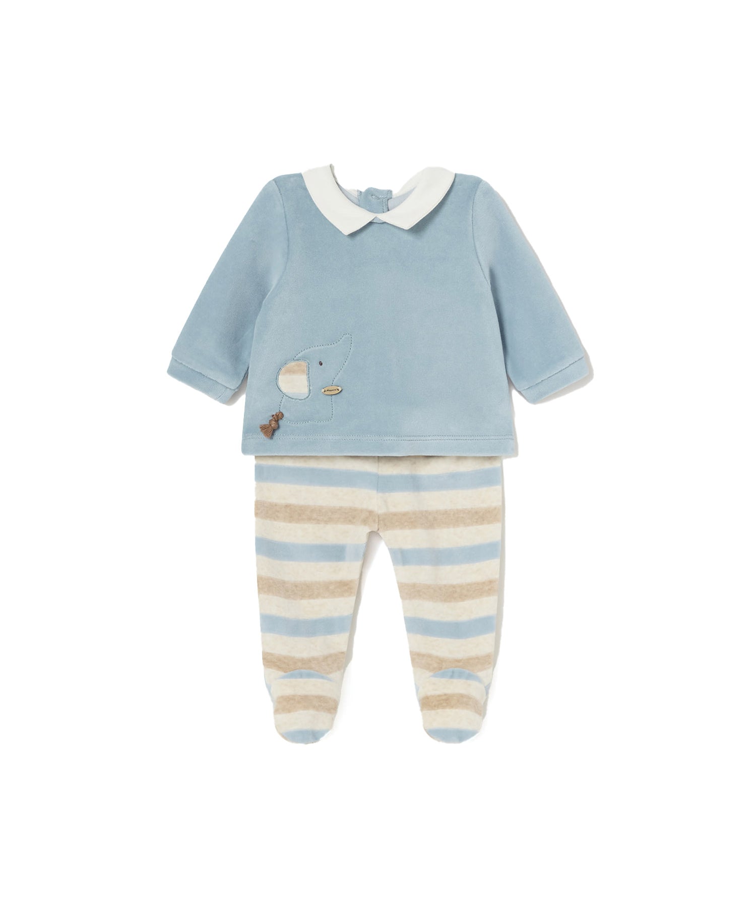 Completo due pezzi maglia e ghettina in ciniglia azzurro
