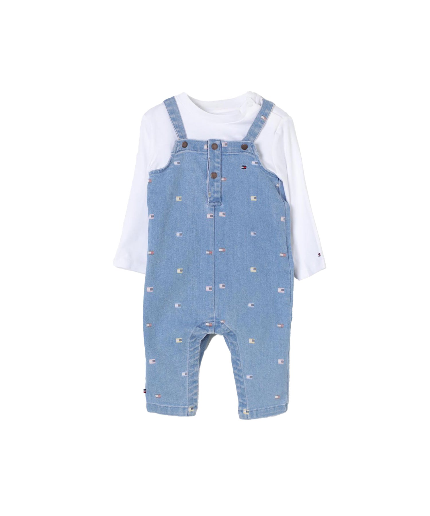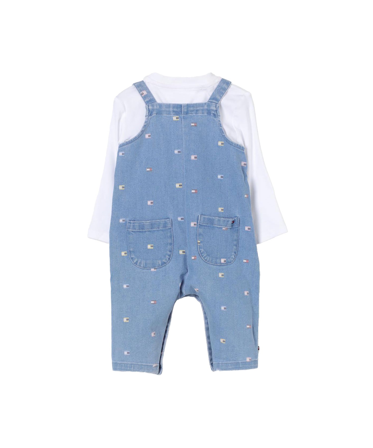 Completo neonato t-shirt e salopette logo allover denim chiaro