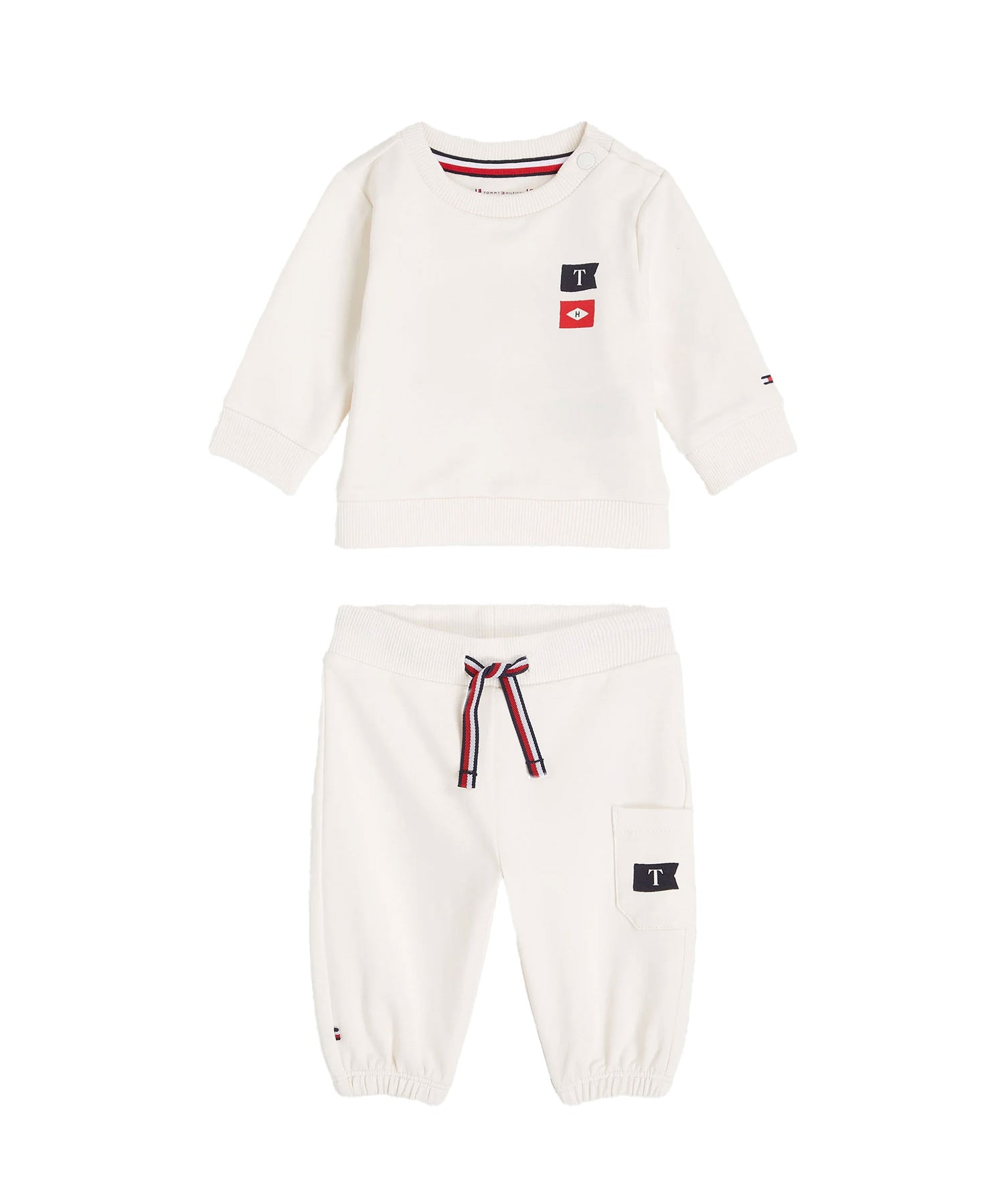 Set tuta felpa con patch teddy e jogger bianco/verde