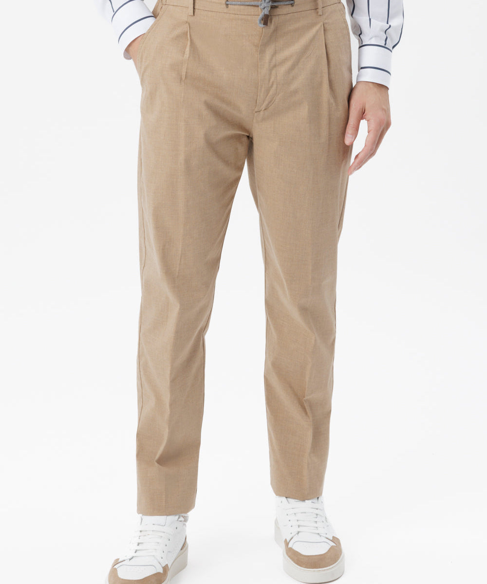 Pantaloni Amalfi in cotone Principe di Galles beige