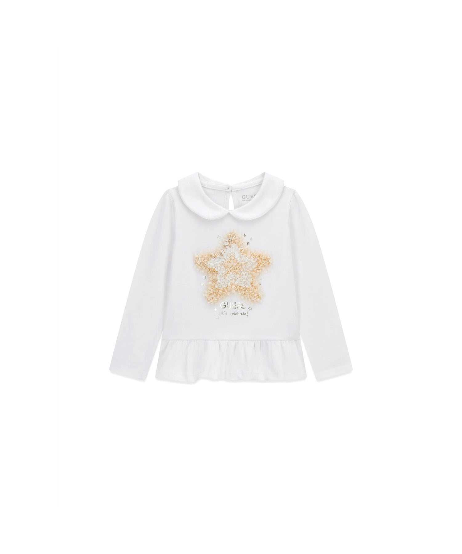 T-shirt manica lunga Guess ragazza con applicazione fiori bianco