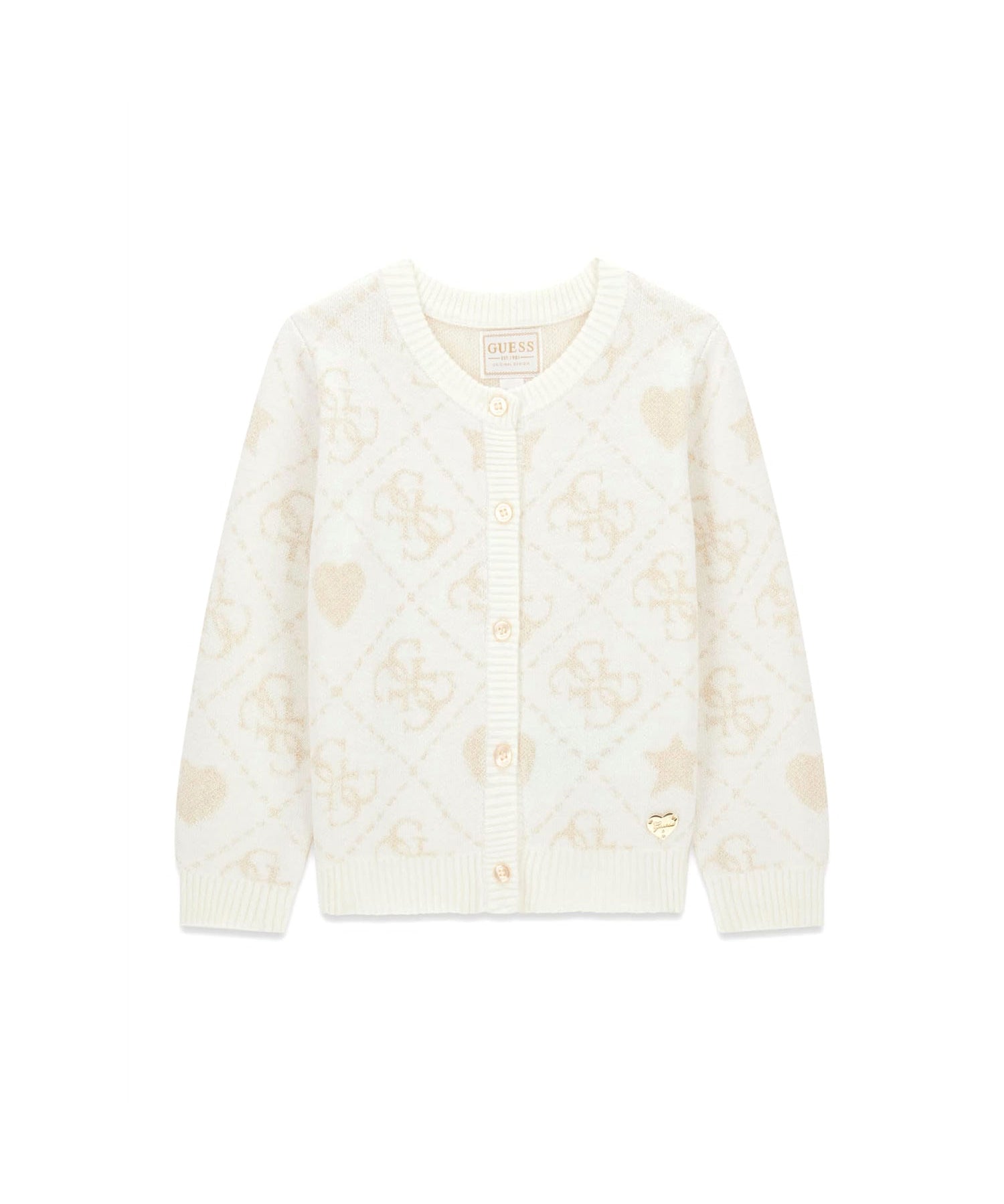 Cardigan con bottoni Guess bambina logo jacquard crema