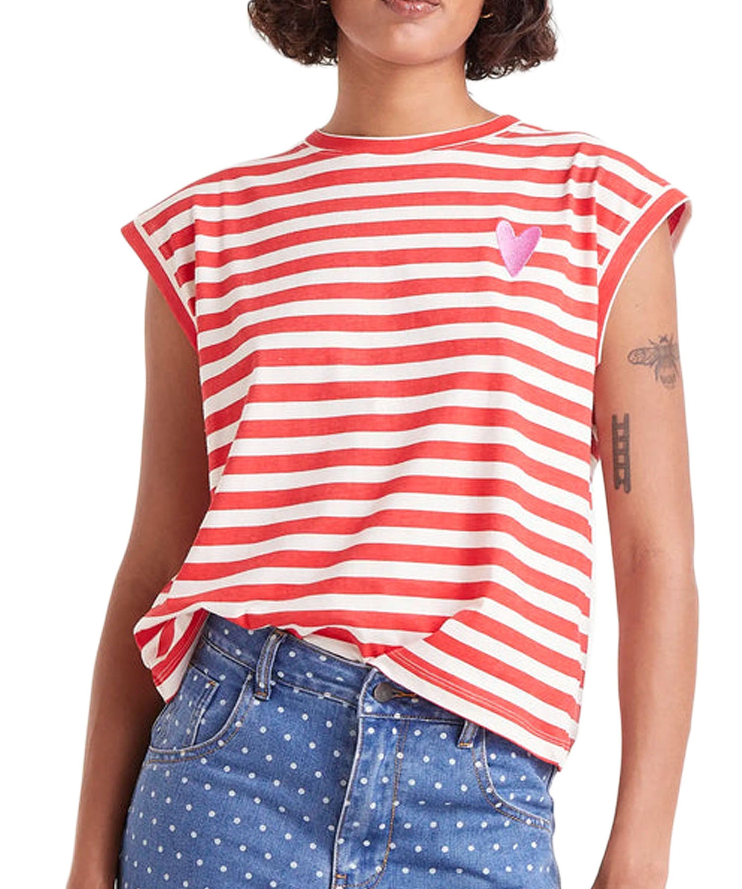 T-shirt in cotone con logo strass sul fondo rosa nude