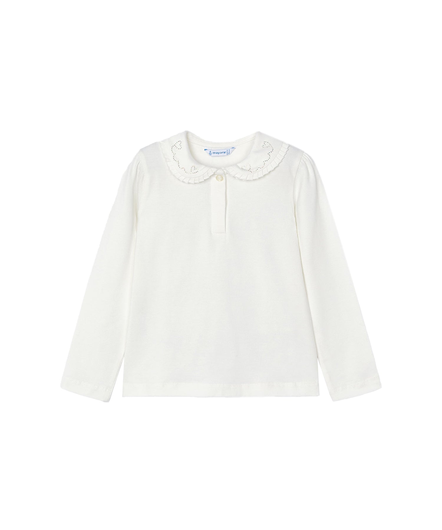 Maglia con colletto strass panna