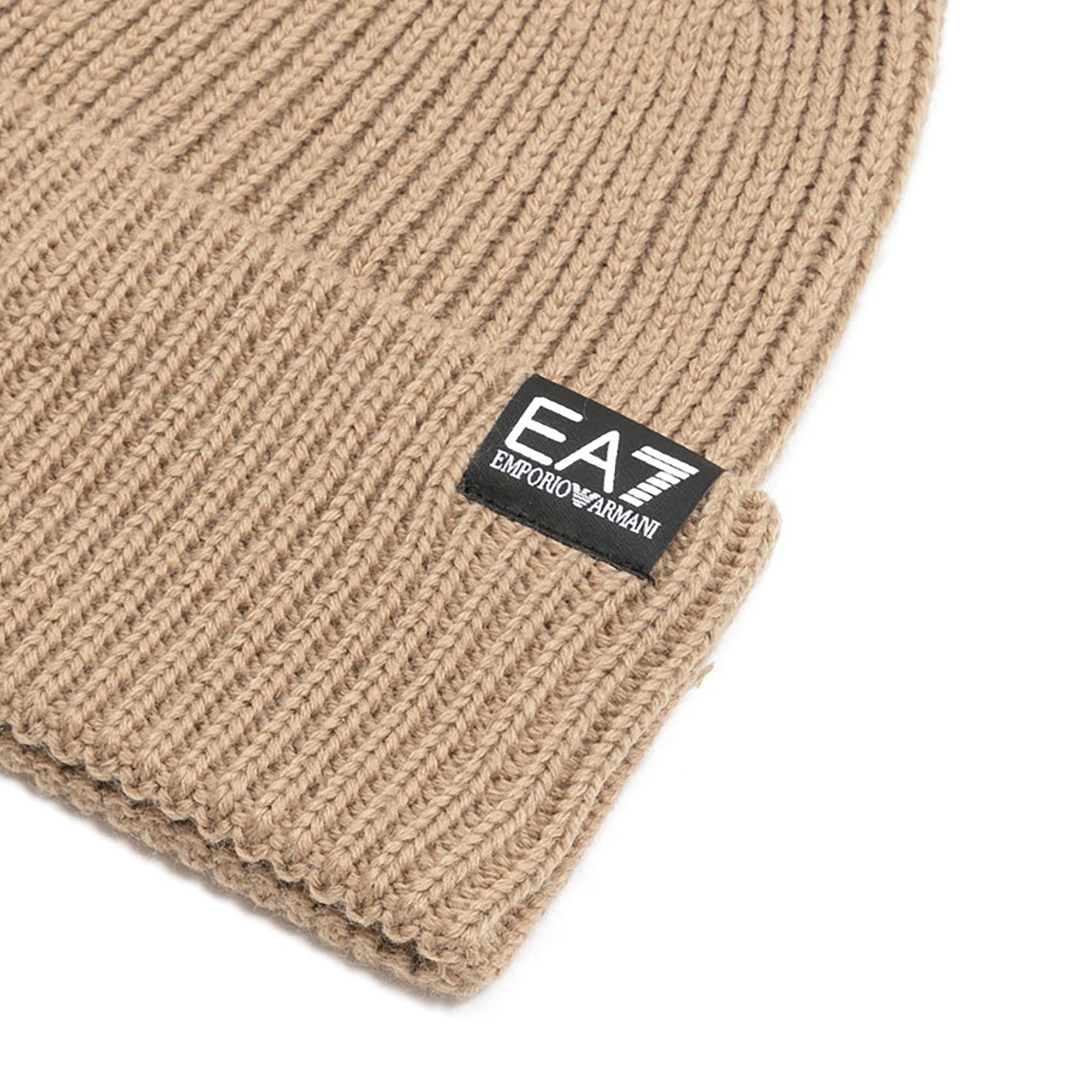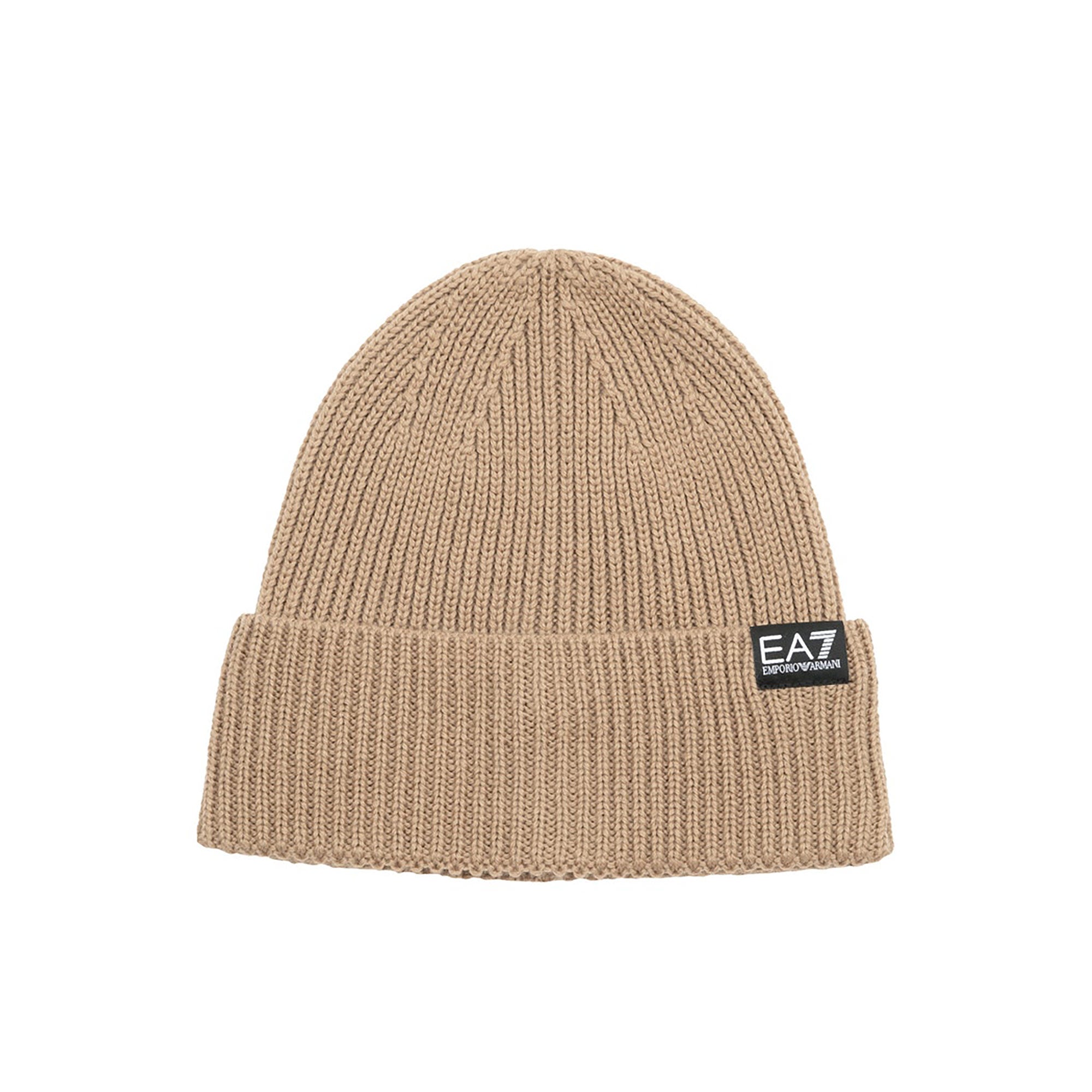 Cappello logo a costine in lana beige