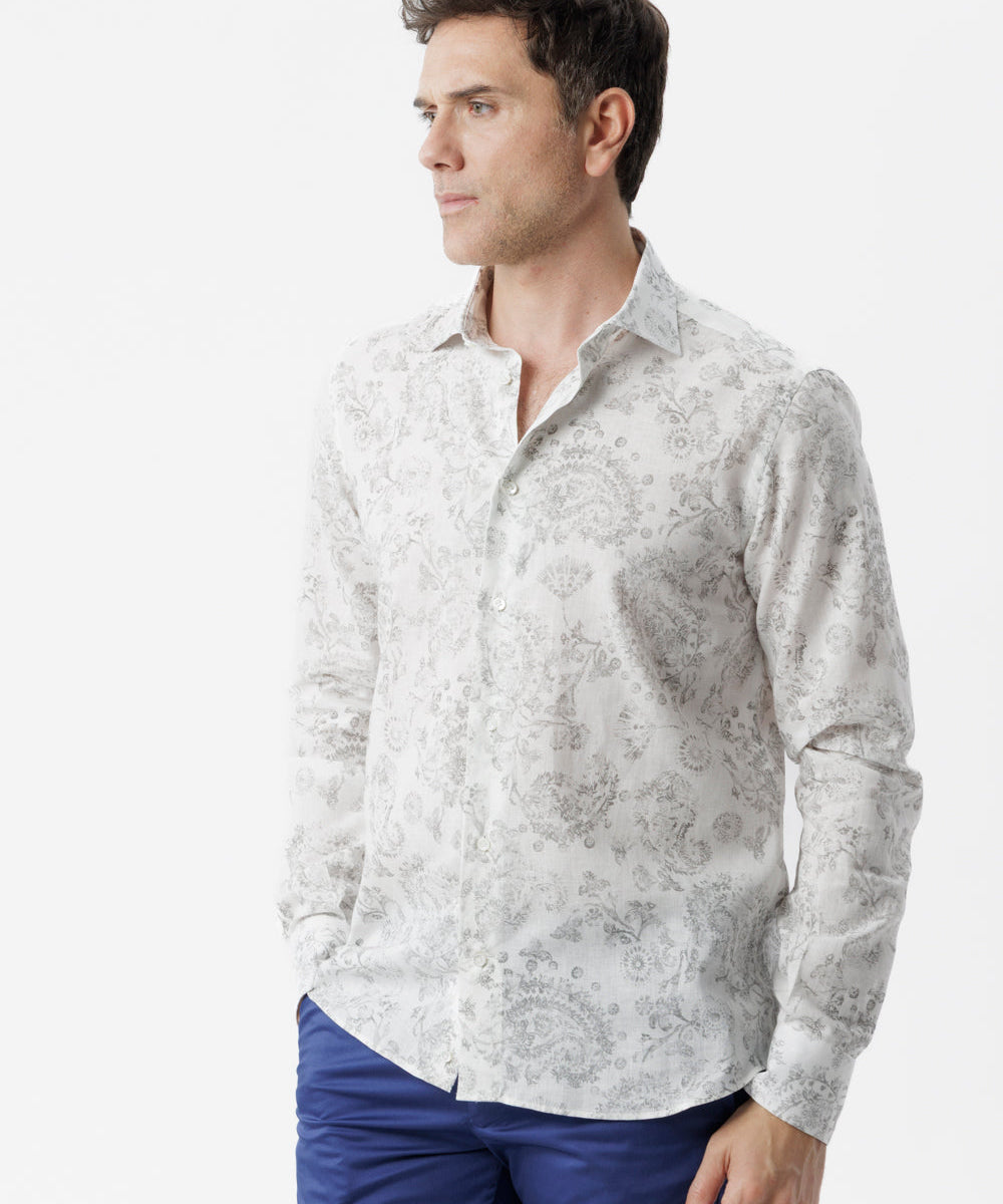 Camicia lino cotone fantasia paisley grigio