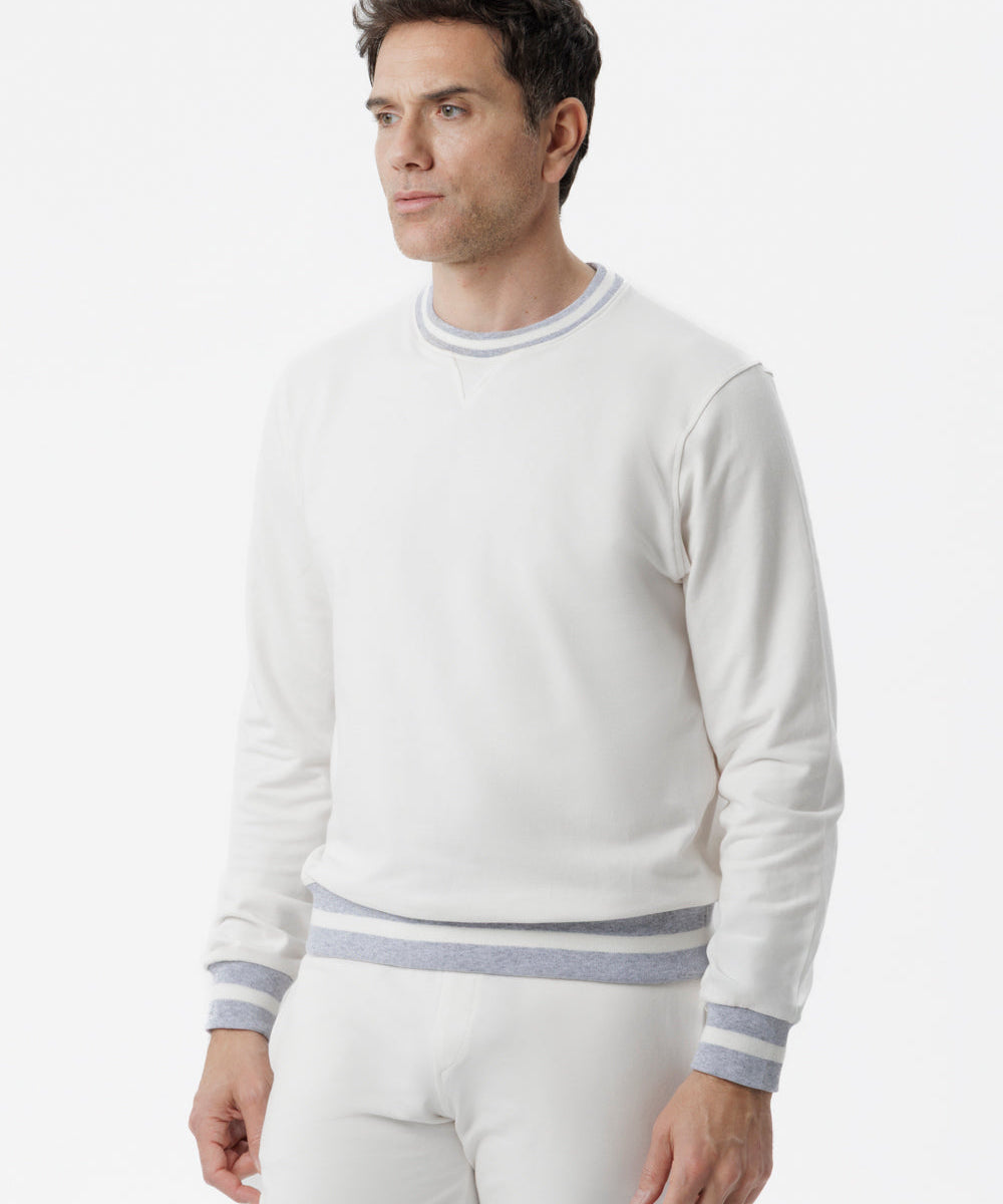 Felpa girocollo in cotone bianco con dettagli bicolore