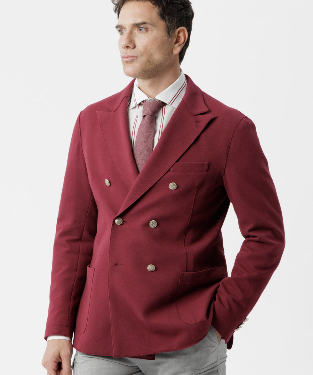 Giacca Siracusa doppiopetto in cotone stretch con taglio vivo e tasche applicate melanzana