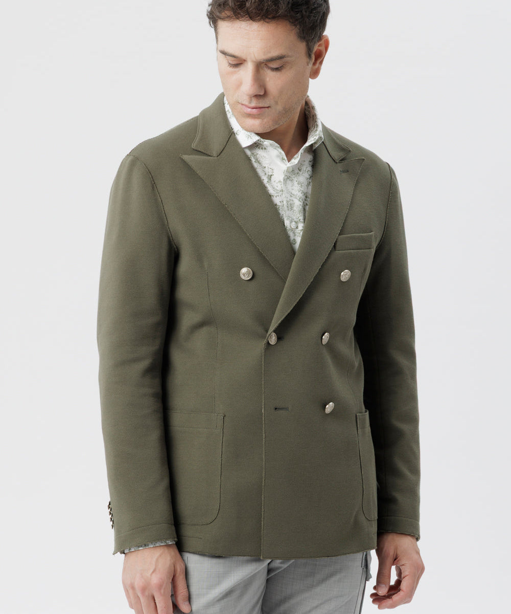 Giacca Siracusa doppiopetto in cotone stretch con taglio vivo e tasche applicate verde militare