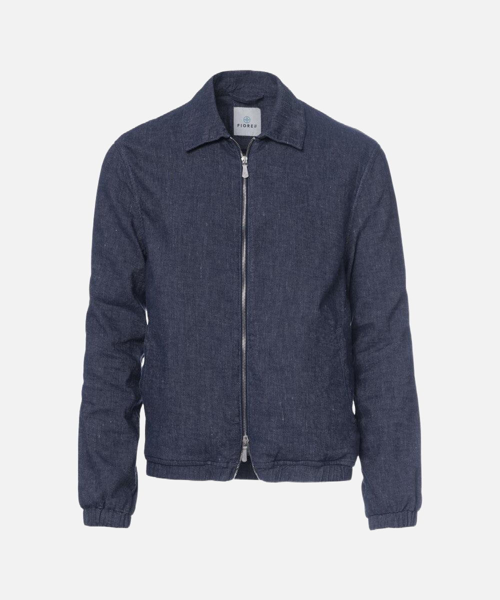 Giubbino Genova con zip in lino misto cotone denim scuro