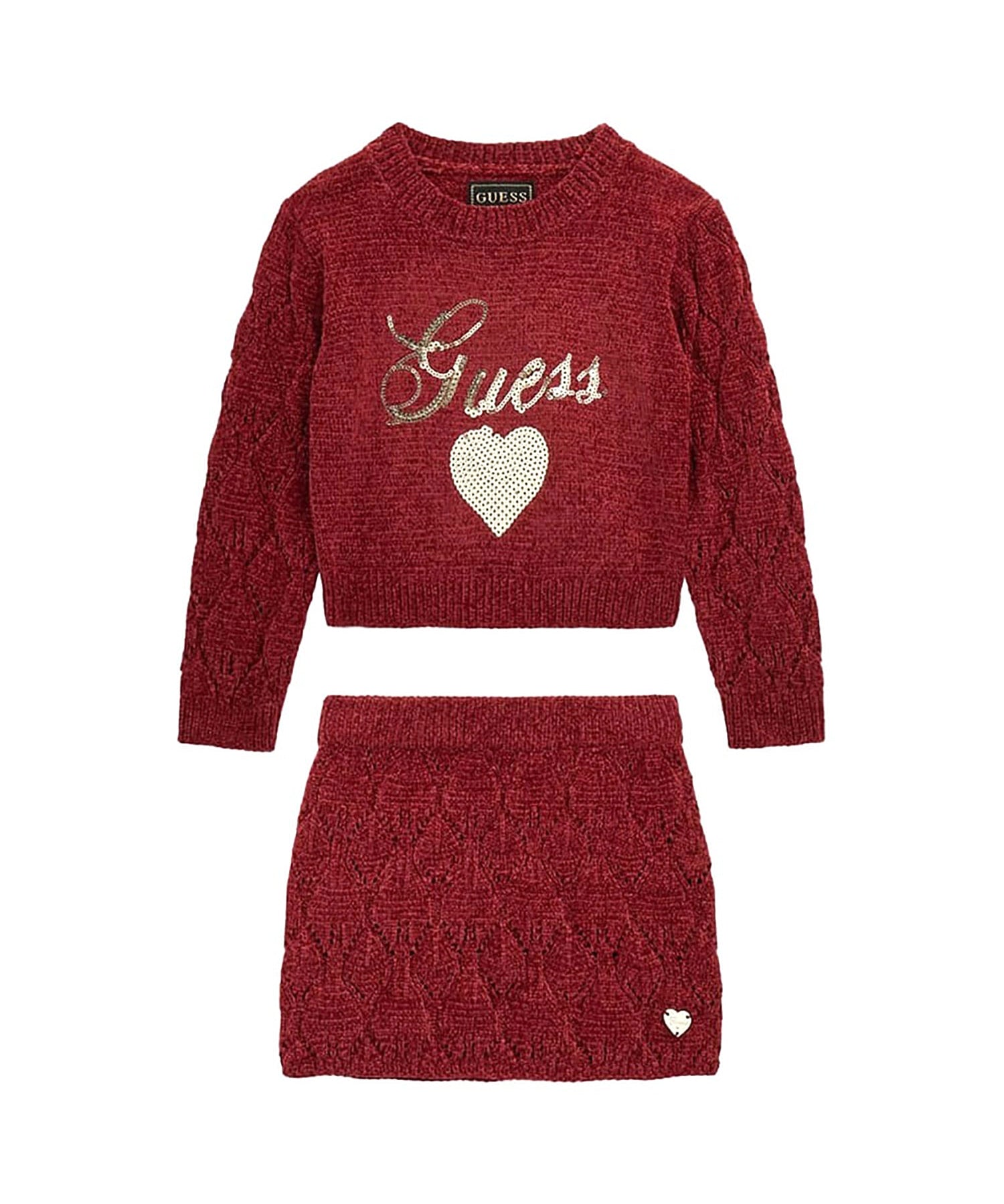 Completo 2 pz Guess bambina maglione e gonna ricamo paillettes rosso