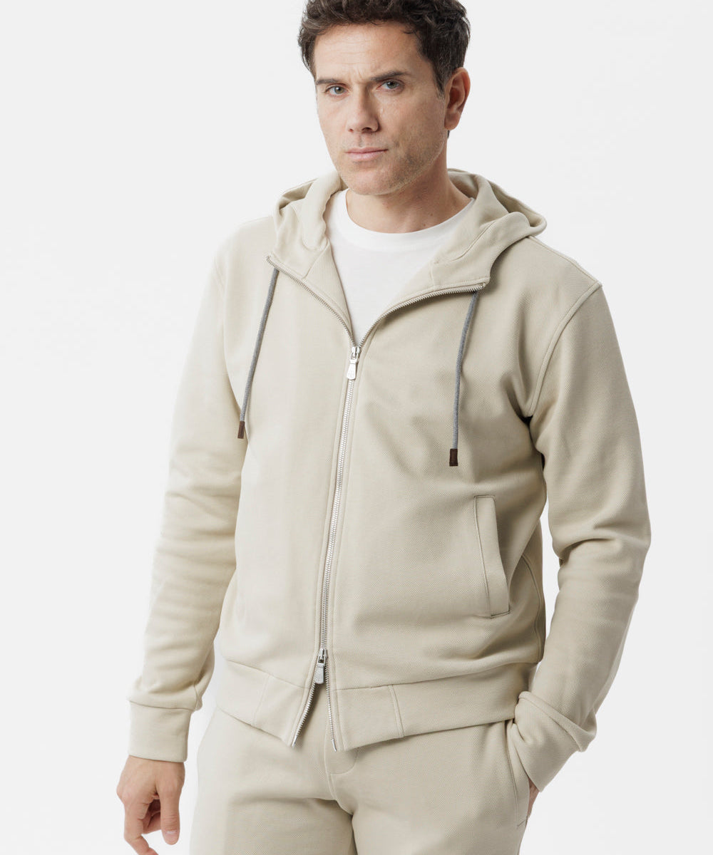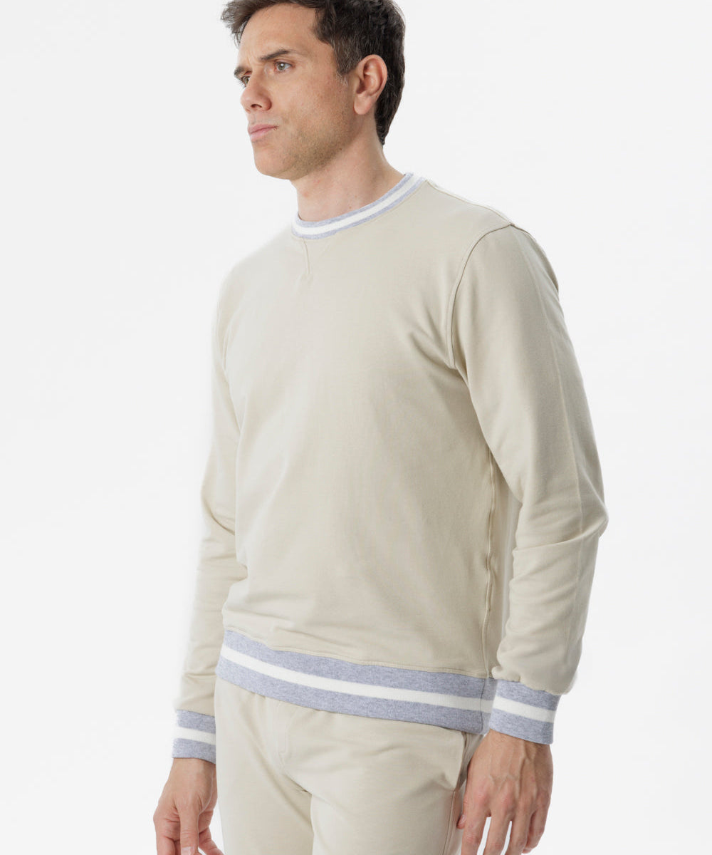 Felpa girocollo in cotone sabbia con dettagli bicolore