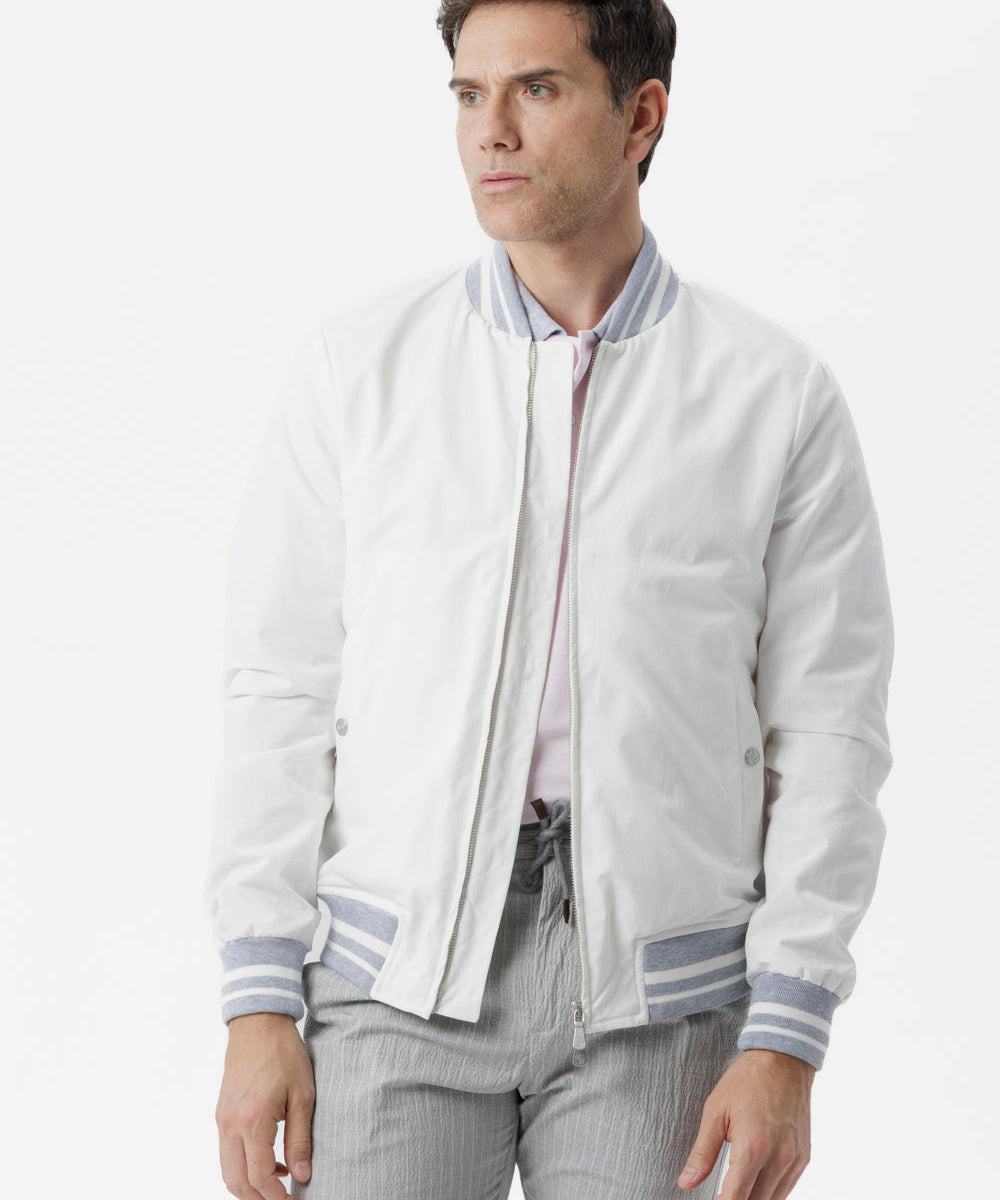 Bomber con dettagli elasticizzati in cotone techno bianco