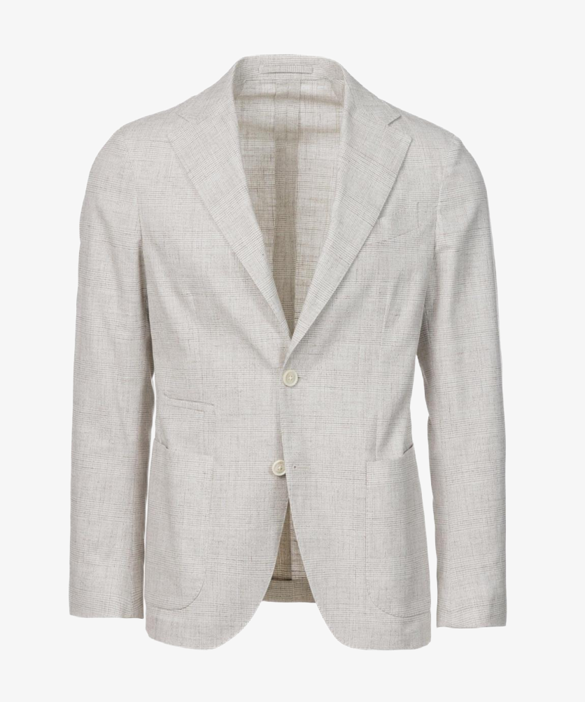 Giacca Napoli monopetto in cotone Principe di Galles beige