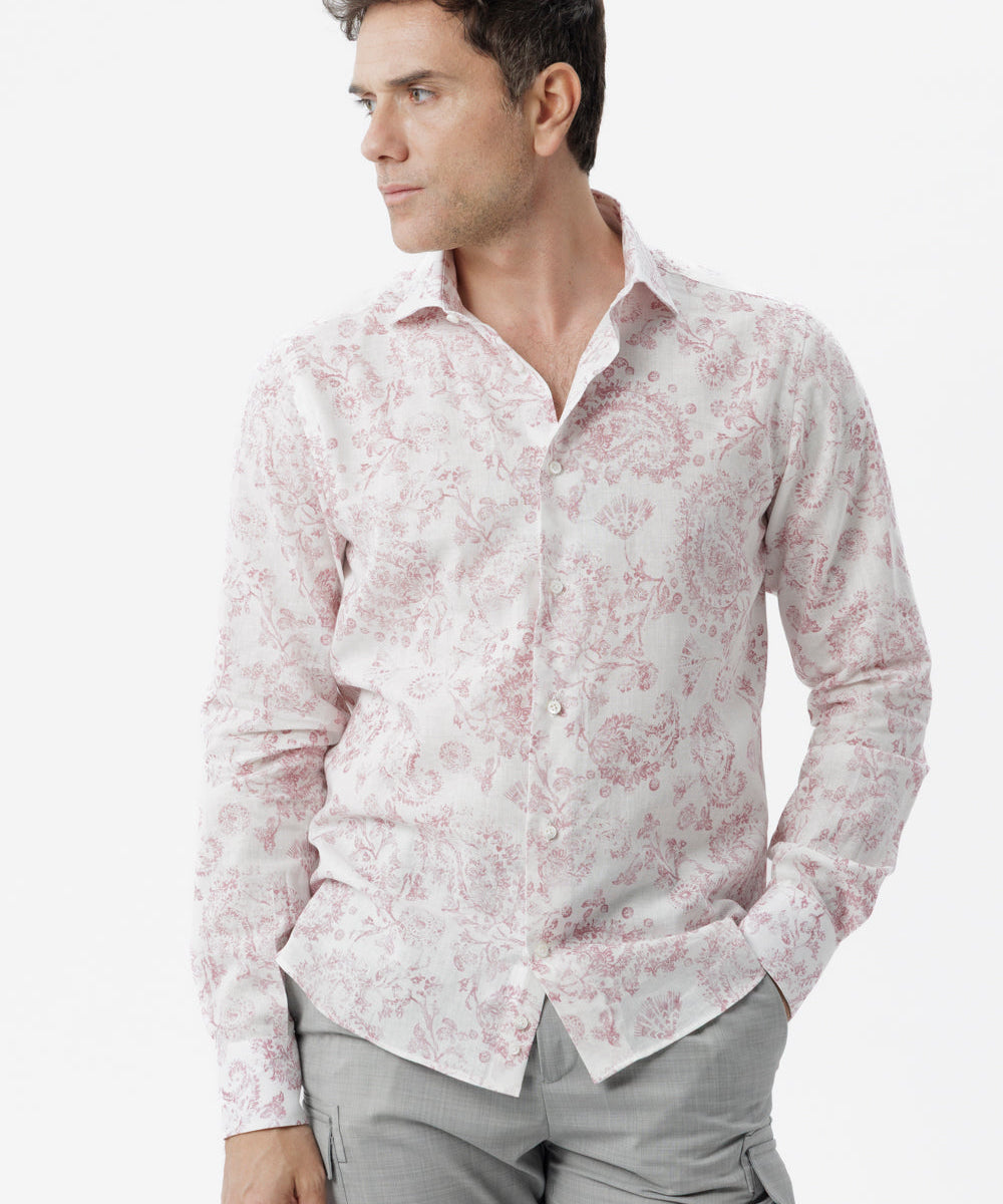 Camicia lino cotone fantasia paisley bordeaux