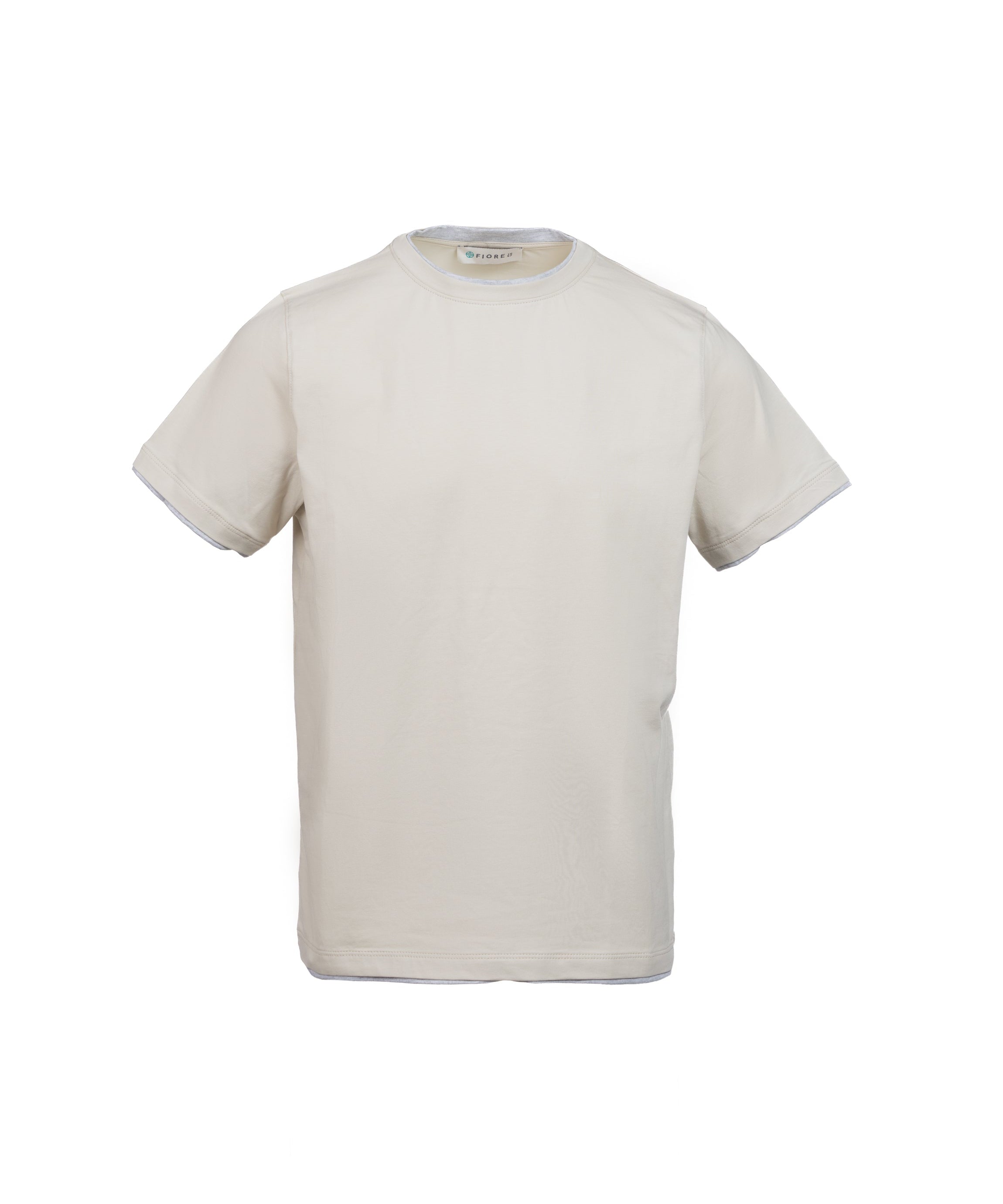 T-shirt in cotone con bordino a contrasto sabbia