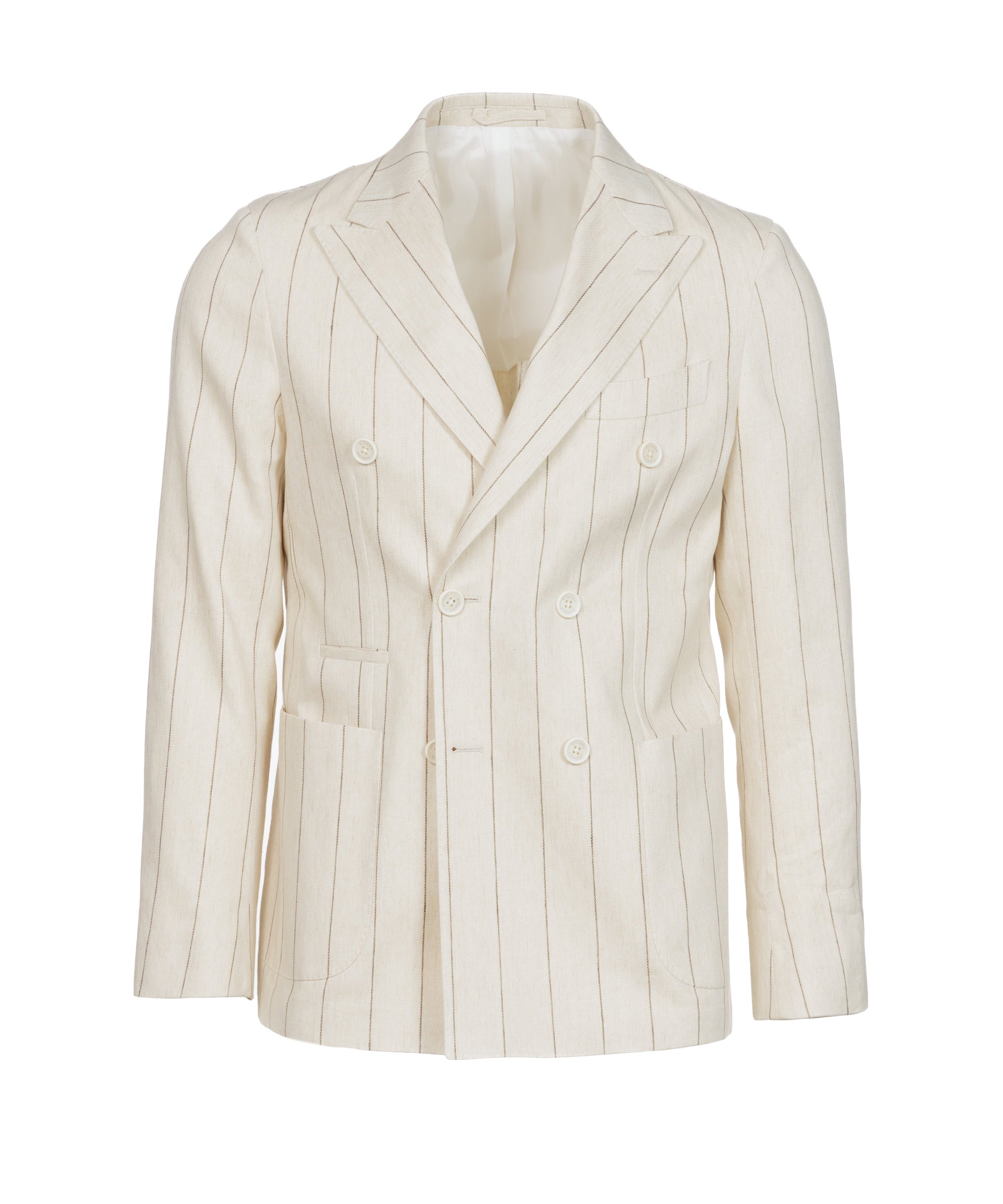 Giacca Venezia doppiopetto in lino e cotone gessata beige