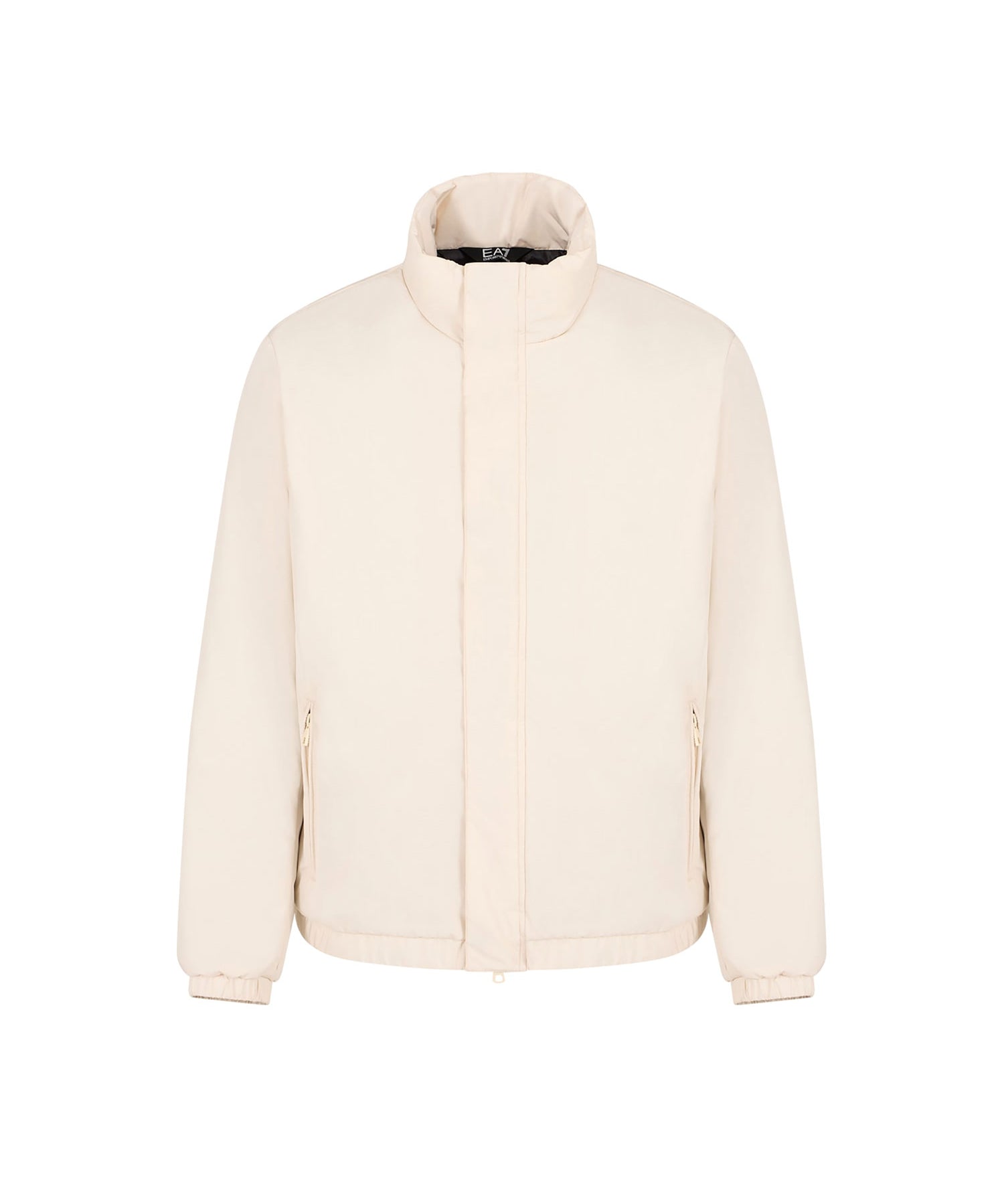 Giubbino con cappuccio e dettagli a contrasto beige/nero