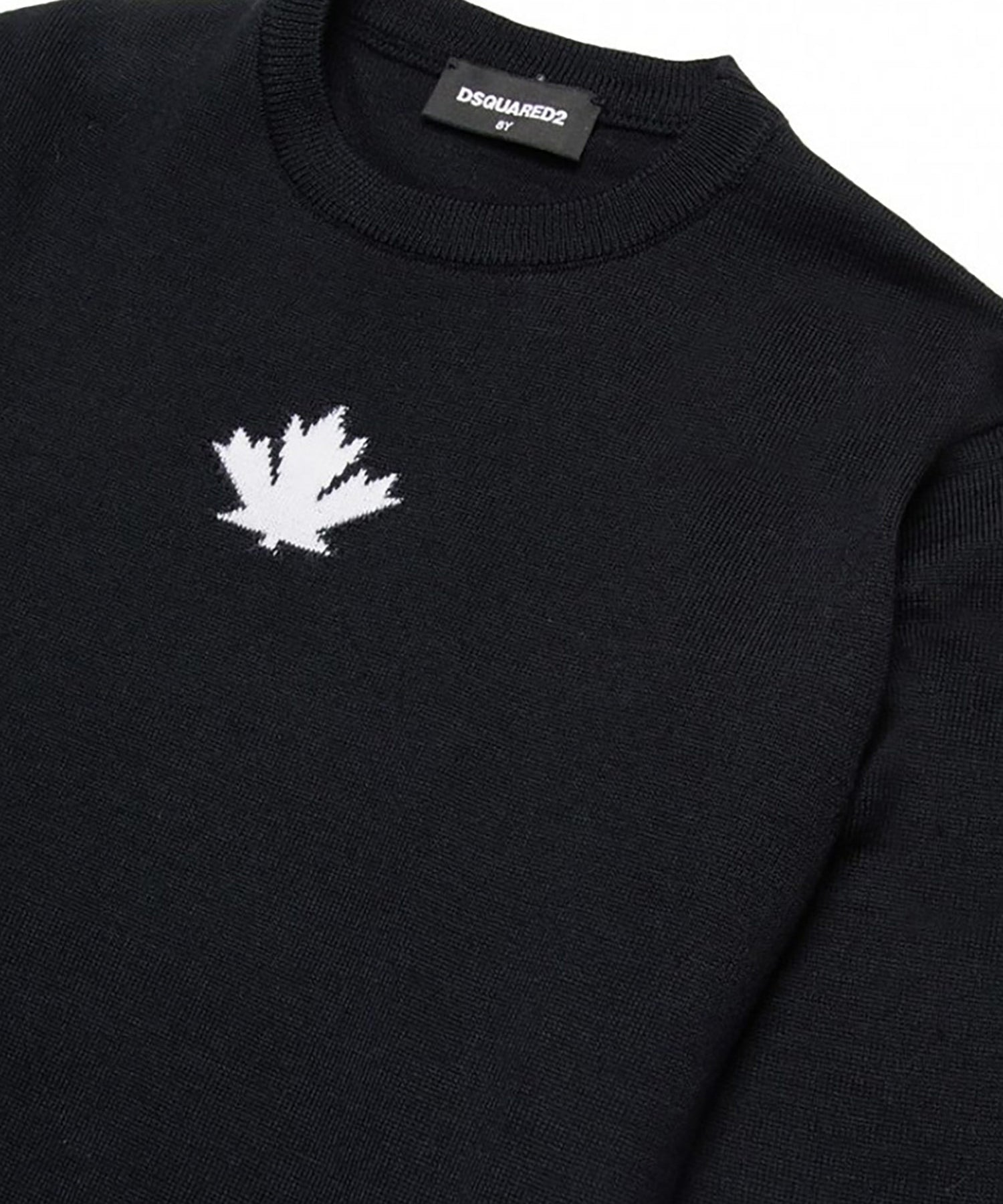 Girocollo con foglia e logo a contrasto laterale nero