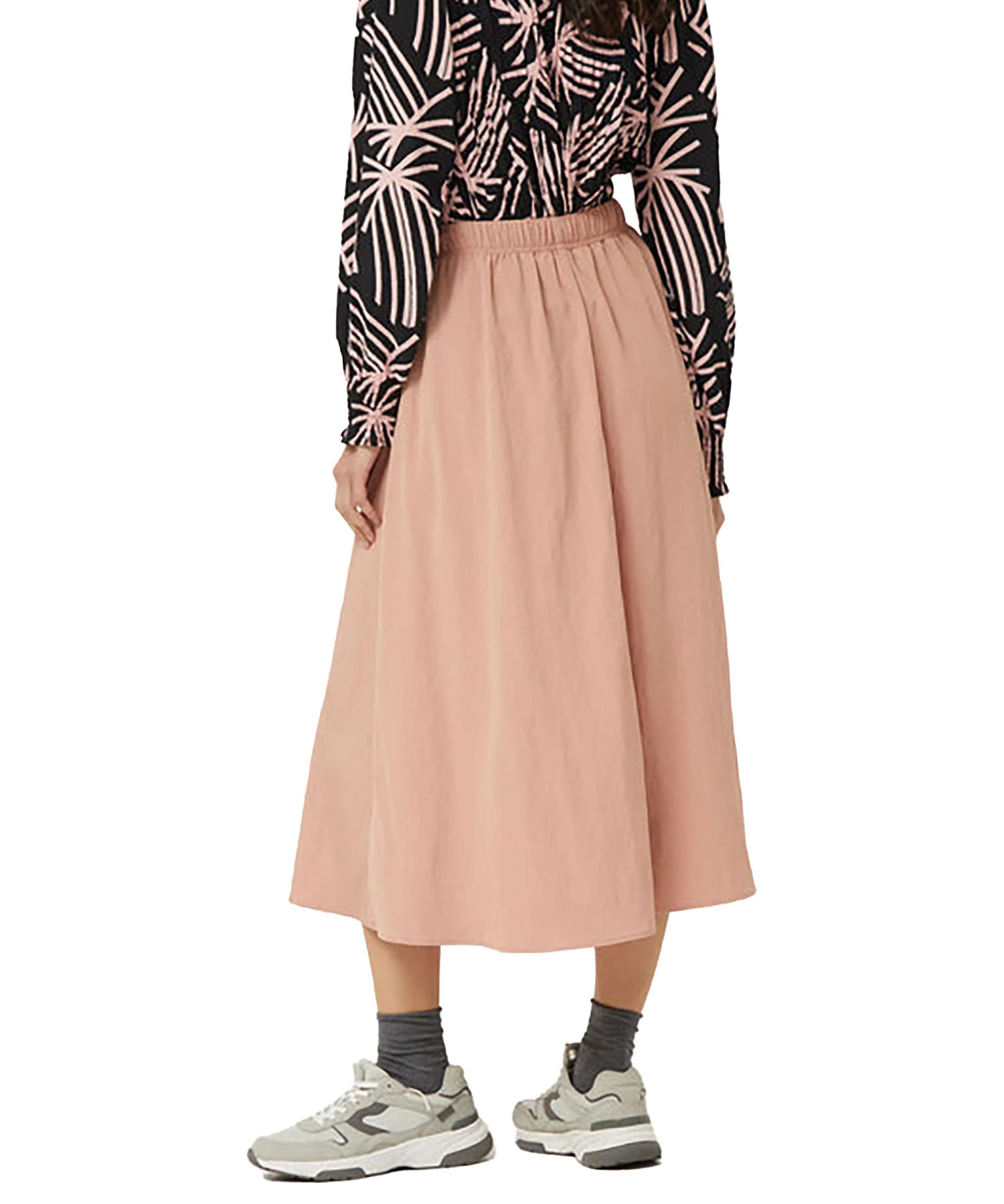 Gonna lunga in tessuto tecnico rosa