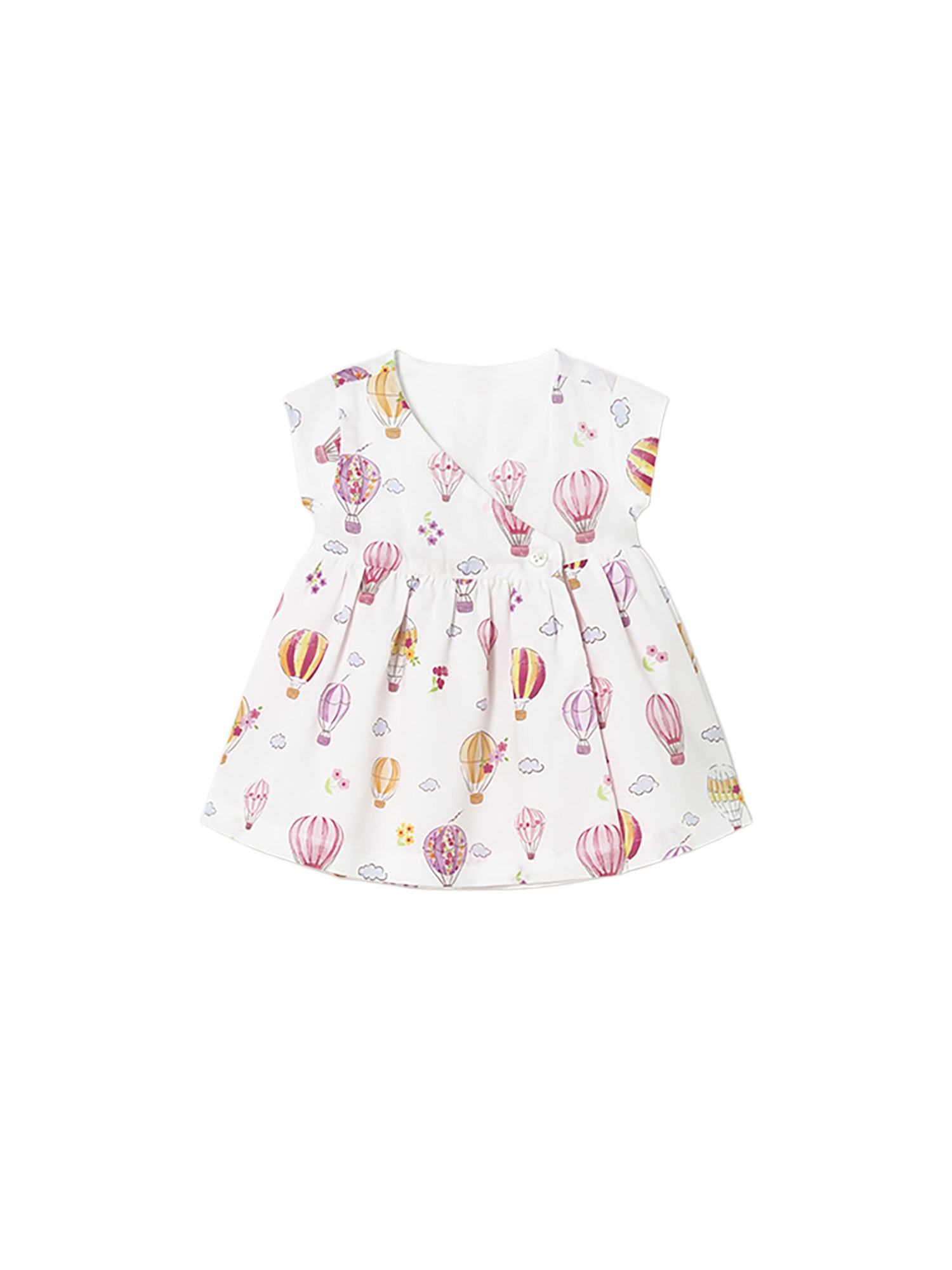 Vestitino Mayoral pratico e originale, perfetto per gli outfit estivi della neonata. Il design reversibile permette di avere due look diversi in un unico capo.