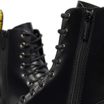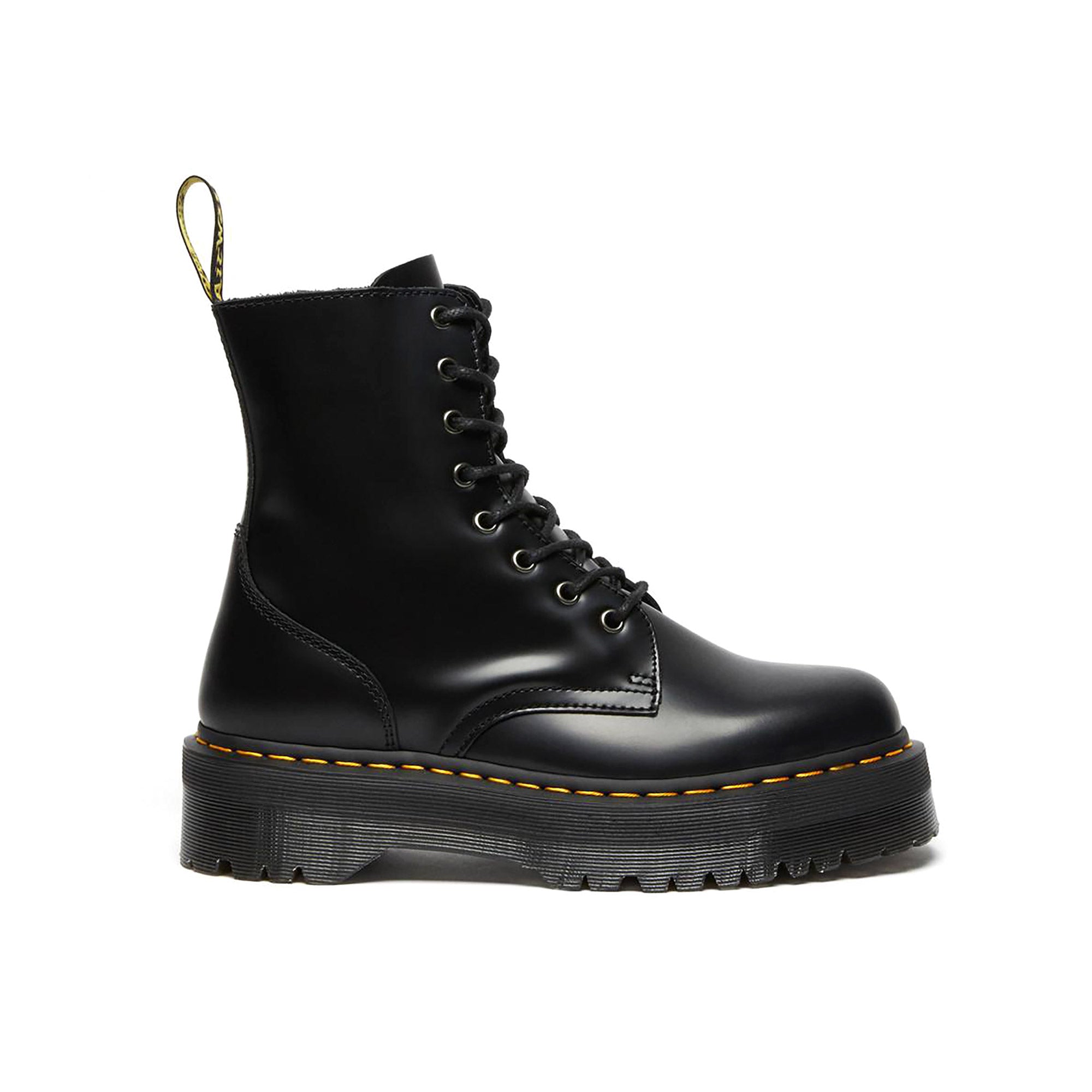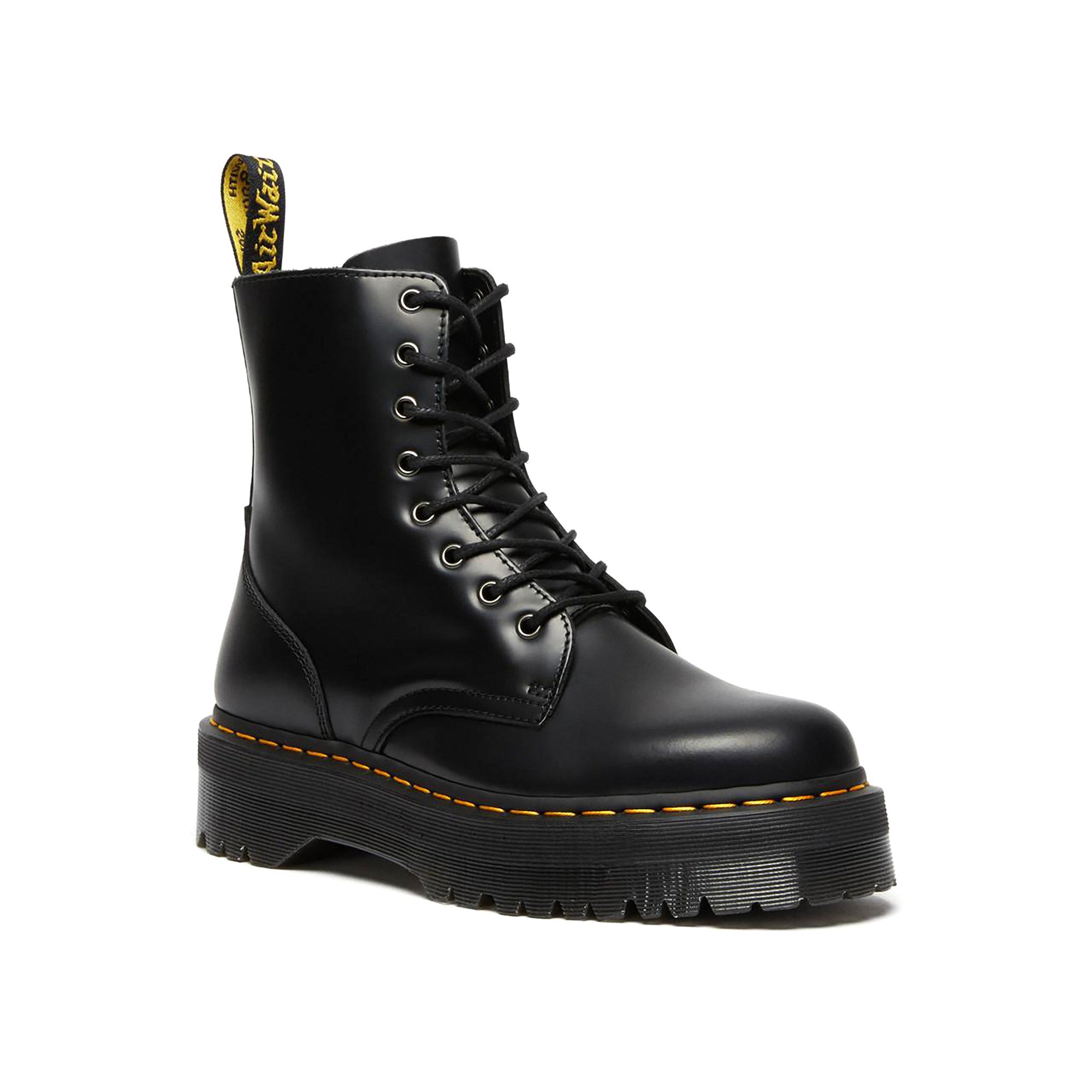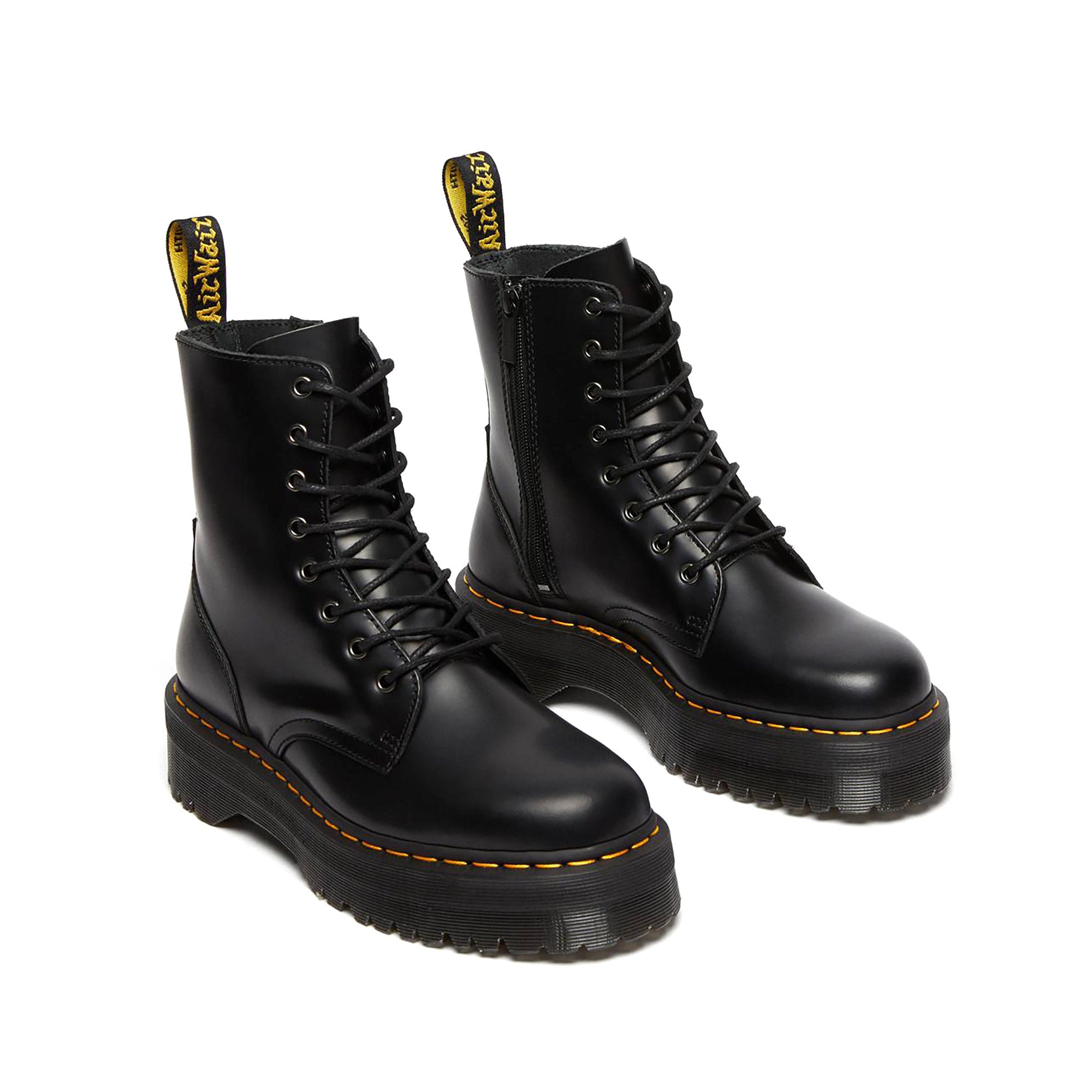 Stivale DR. Martens, modello iconico per la sua imponente suola platform, realizzato in pelle Polished Smooth. La suola presenta un motivo scanalato ed è rifinita dalle cuciture gialle. Sul tallone, l'immancabile linguetta nera e gialla. Lo stivale presenta anche una comoda cerniera laterale. Qualunque sia il tuo look, scegli di essere audace.