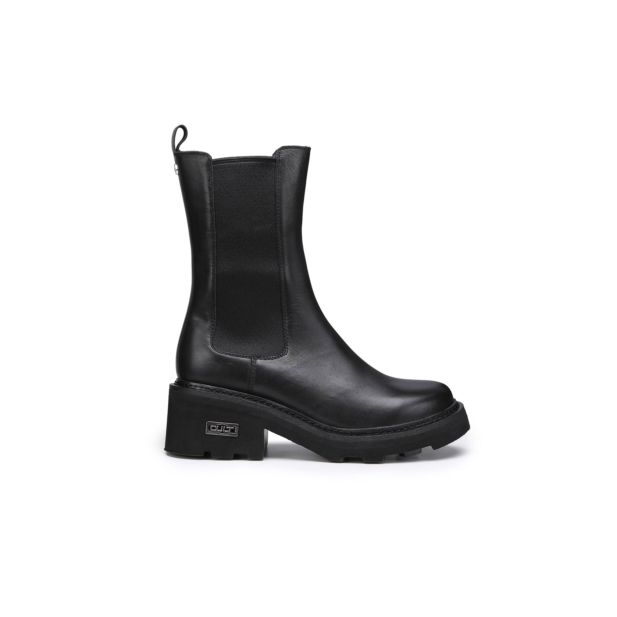Stivali Cult alti in pelle, realizzato secondo il classico modello Chelsea con inserti elasticizzati, ma arricchito da comodo tacco a blocco.