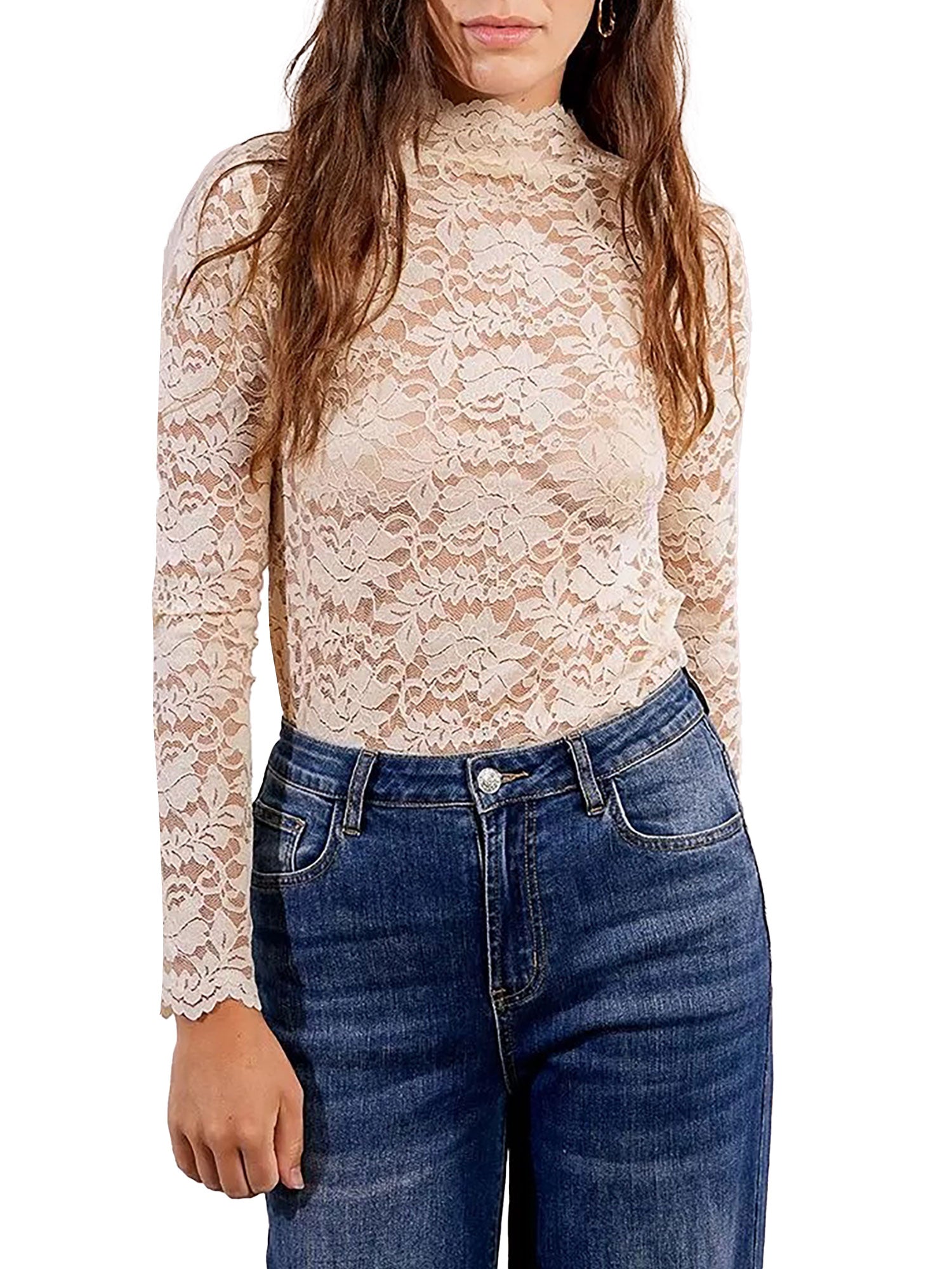 Blusa Molly Bracken donna manica lunga pizzo crema