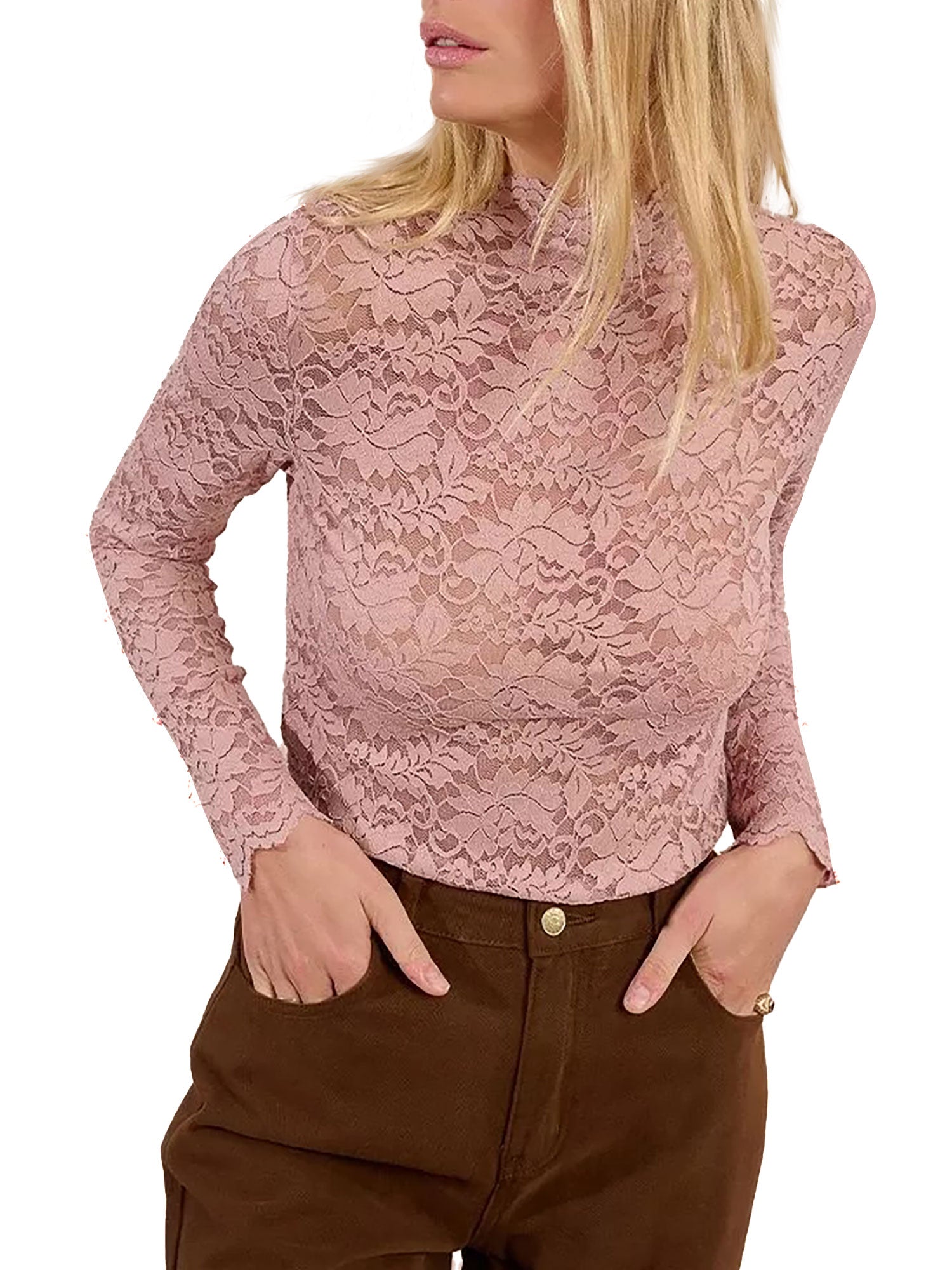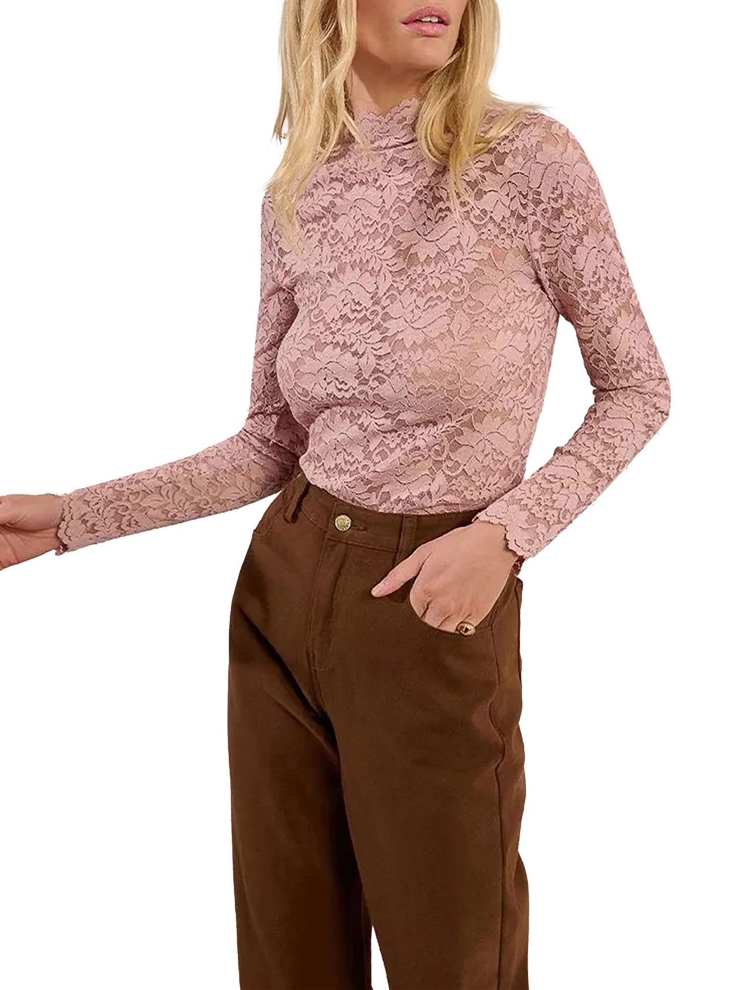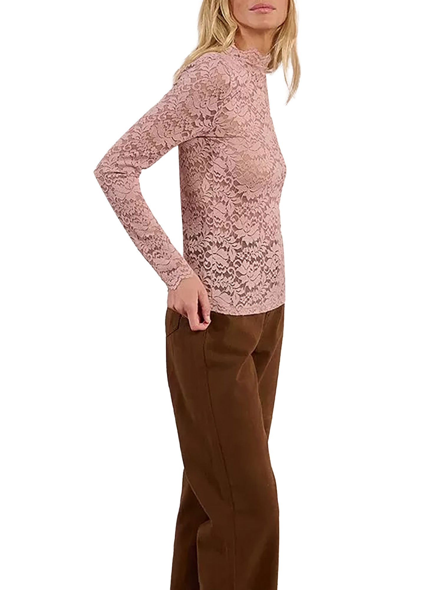 Blusa Molly Bracken donna manica lunga pizzo rosa