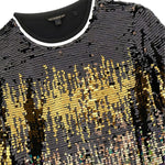Blusa Guess sequin oro/nero con pailettes. Fai brillare la tua eleganza con questa blusa che riuscirà ad esaltare il tuo outift stupendo tutti quelli attorno a te.