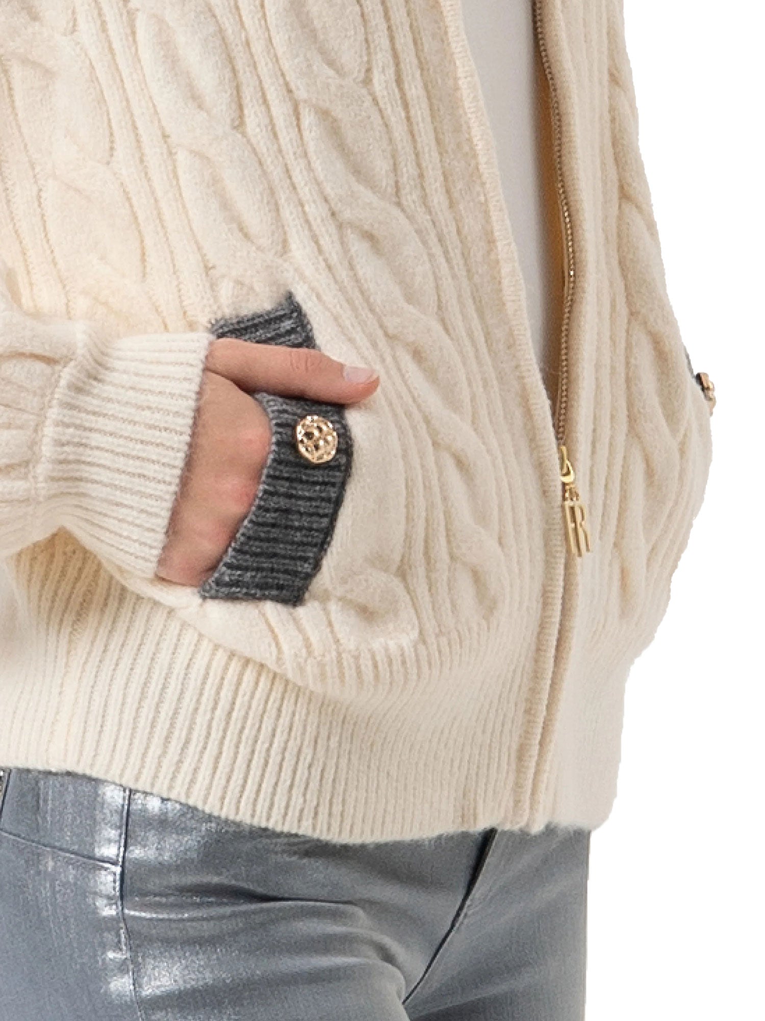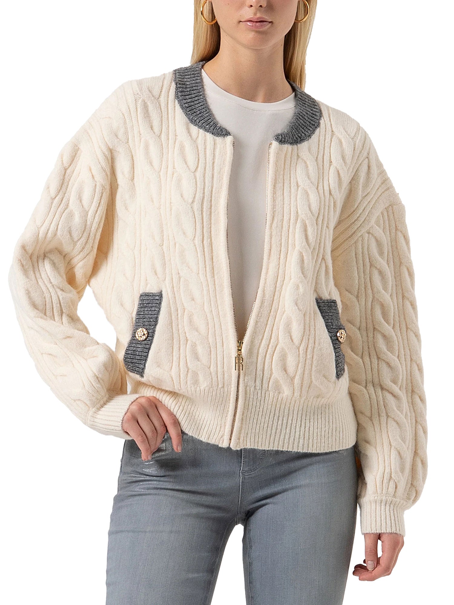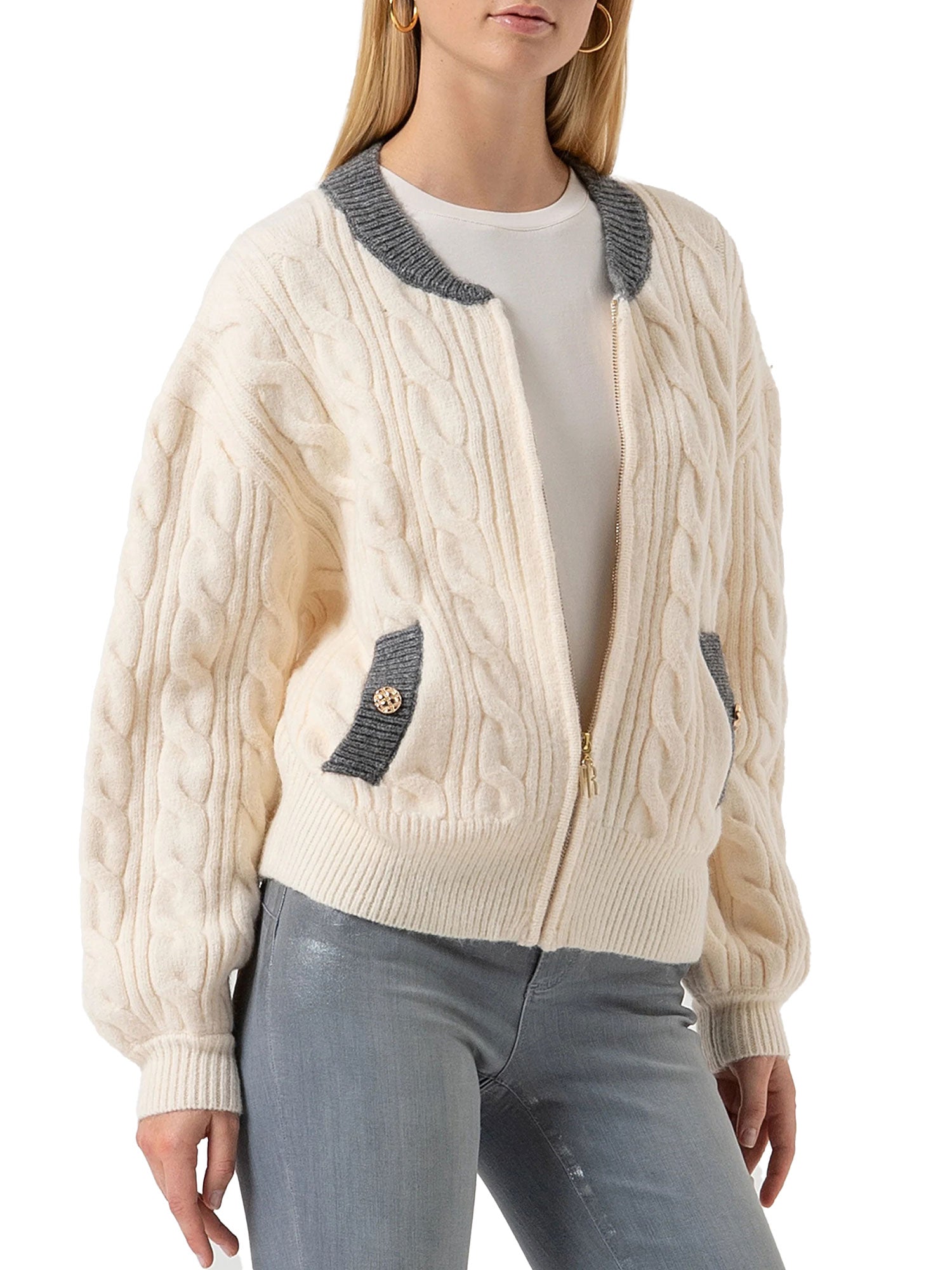 Bomber Fracomina donna con zip knitted bianco/grigio