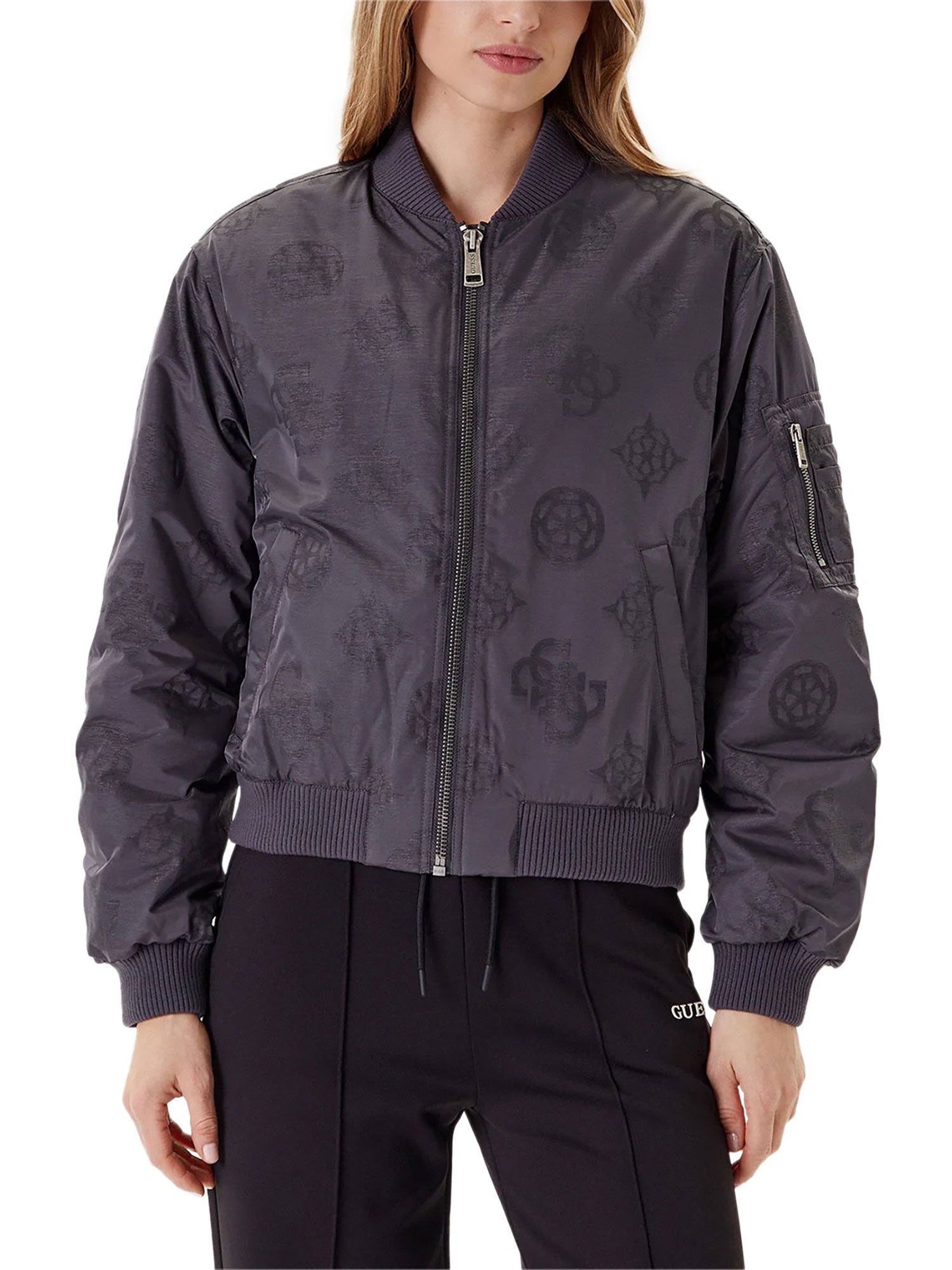 Giubbotto bomber Guess donna Philomene. Un modello dal look deciso e contemporaneo, caratterizzato dal logo allover tono su tono che aggiunge un tocco distintivo allo stile urbano. Perfetto per completare outfit casual con un tocco fashion.