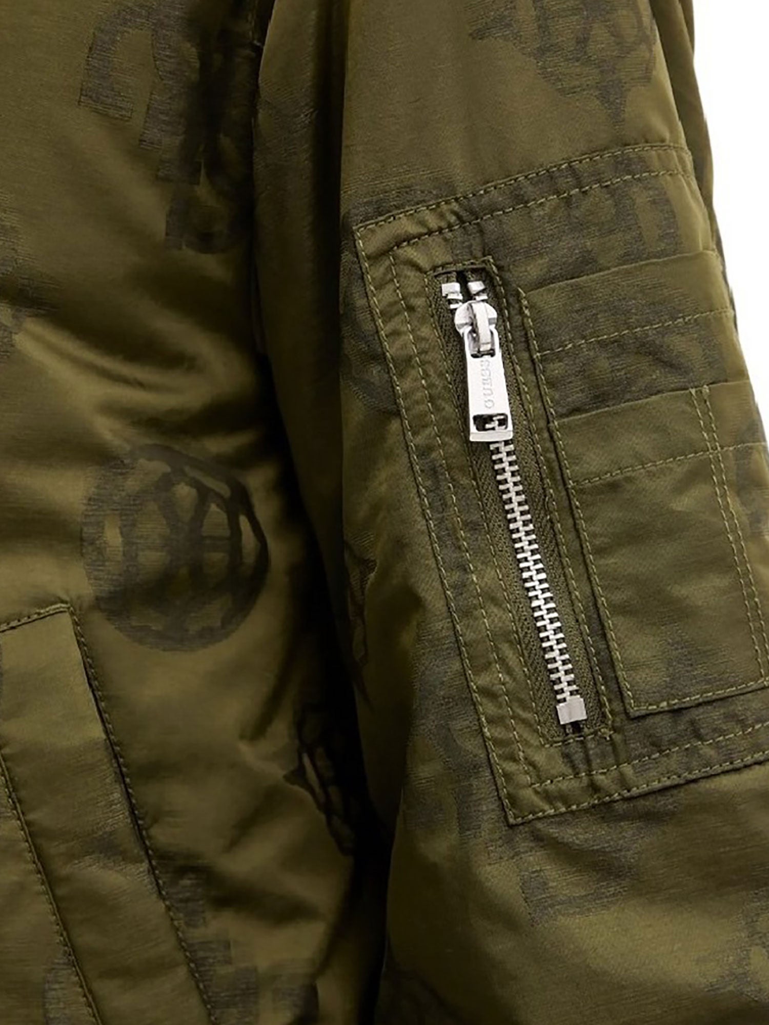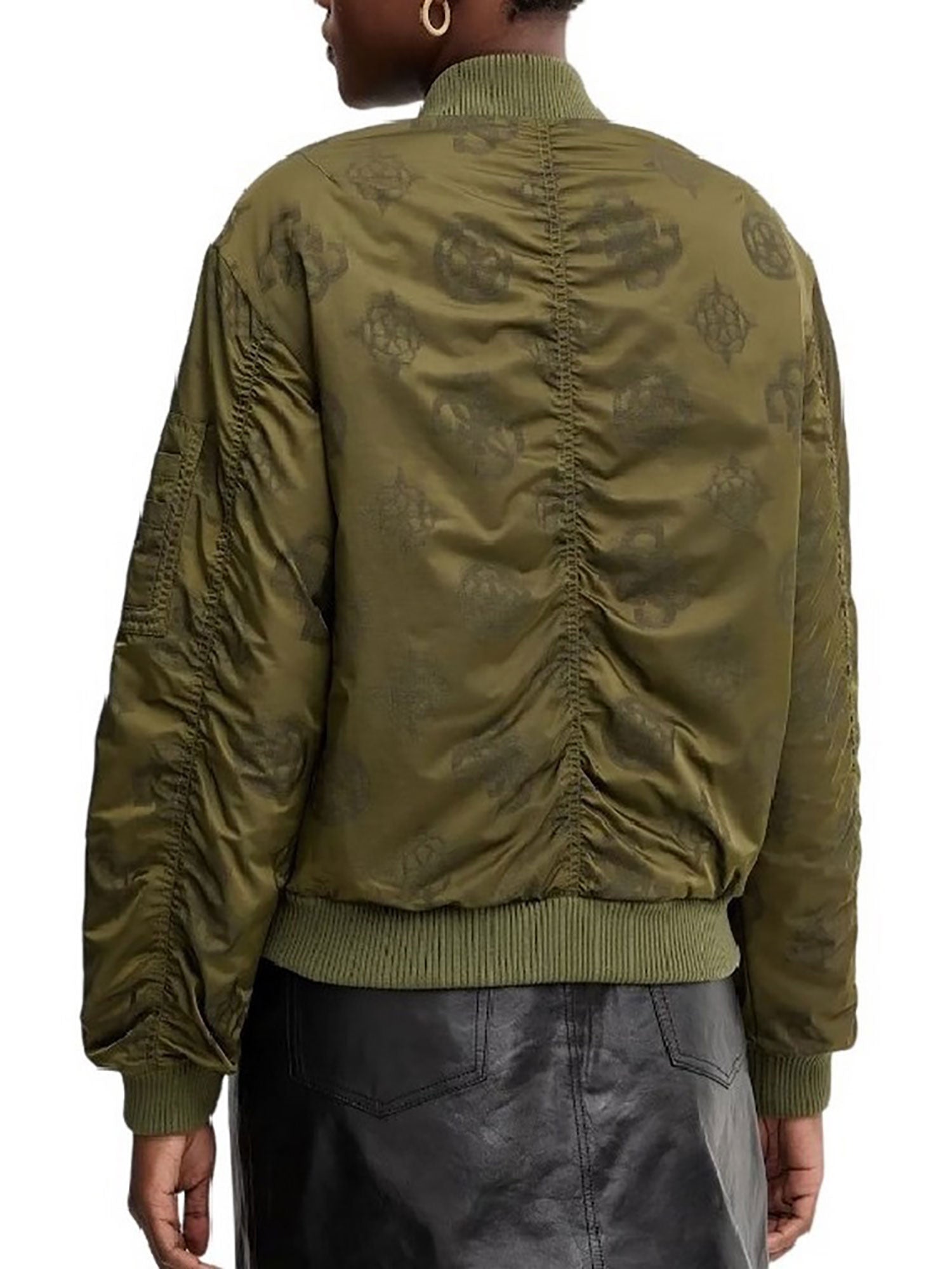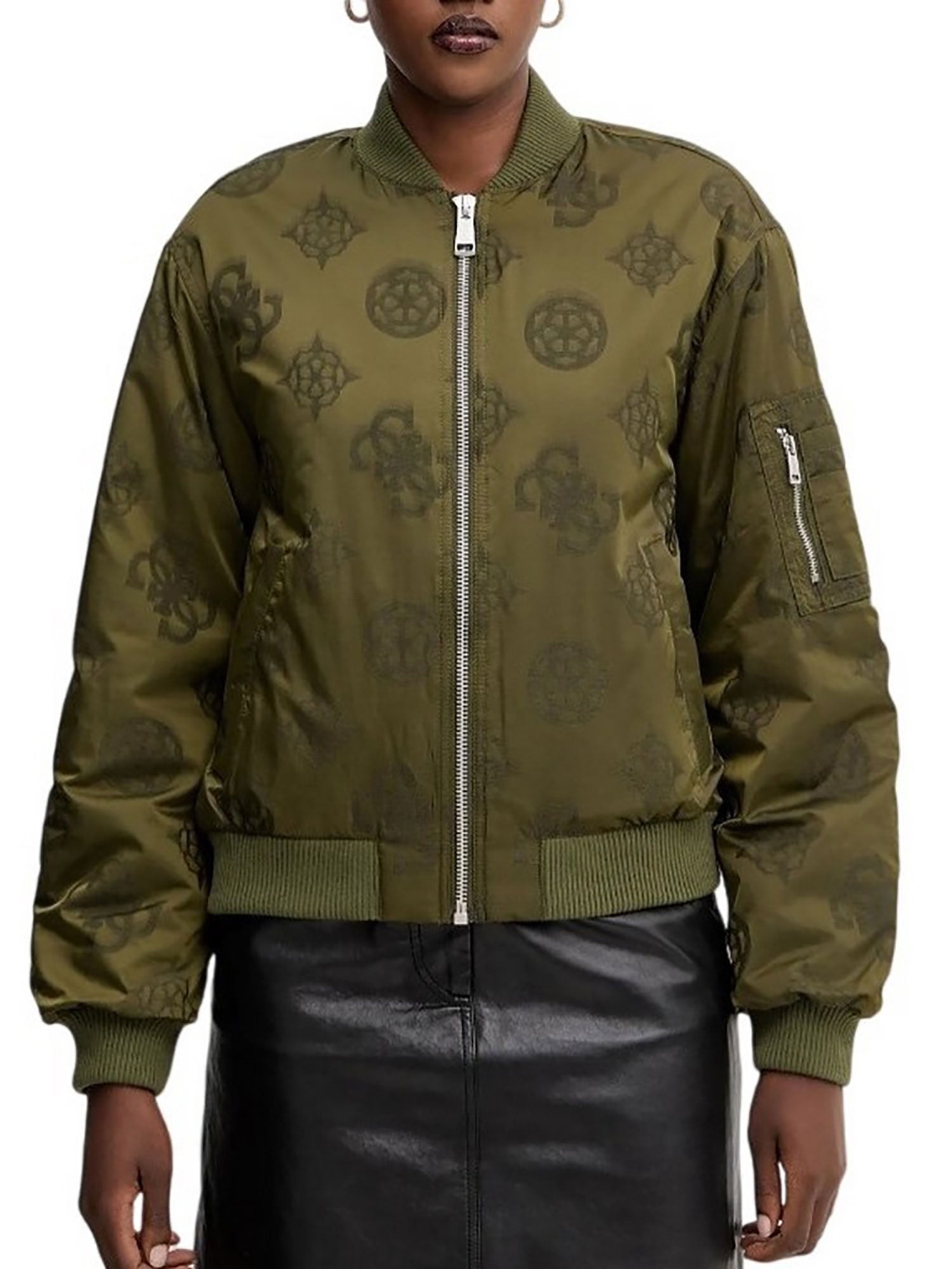 Giubbotto bomber Guess donna con zip e logo allover Philomene verde