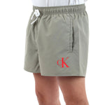 Costume da bagno Boss dal design moderno ed elegante, caratterizzato dal logo "CK" ricamato sul lato sinistro della gamba. La vestibilità è comoda grazie alla vita elasticizzata con coulisse per una regolazione personalizzata. Le tasche laterali, funzionali e pratiche, completano il design. La lunghezza del costume è ideale per un look sportivo e confortevole, adatto sia per il mare che per attività all'aperto. Il tessuto è leggero e confortevole, perfetto per le giornate estive.