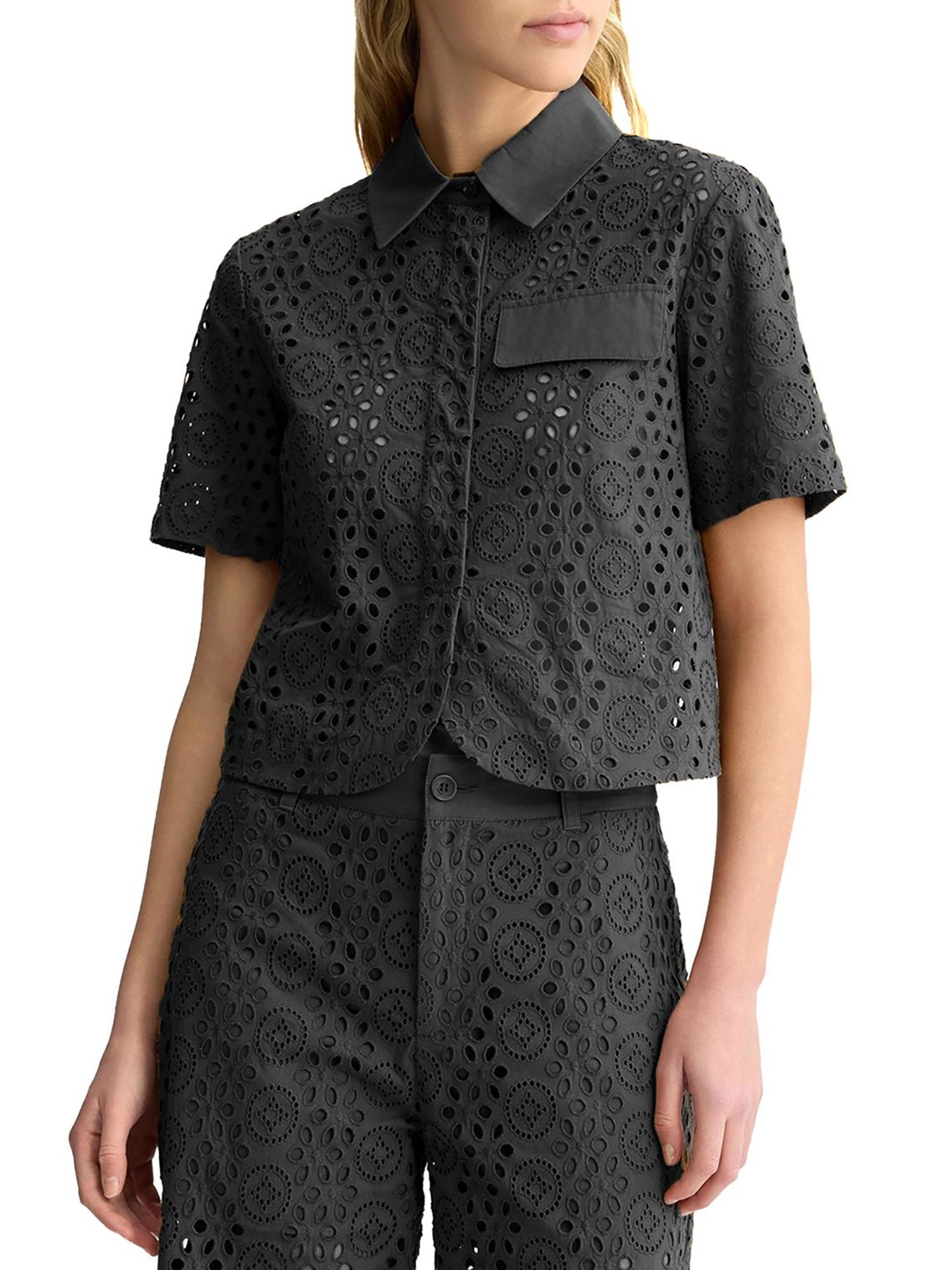 Camicia cropped Liu Jo in cotone, perfetta per la stagione estiva. Il taglio cropped e il ricamo in sangallo donano un tocco romantico e contemporaneo.