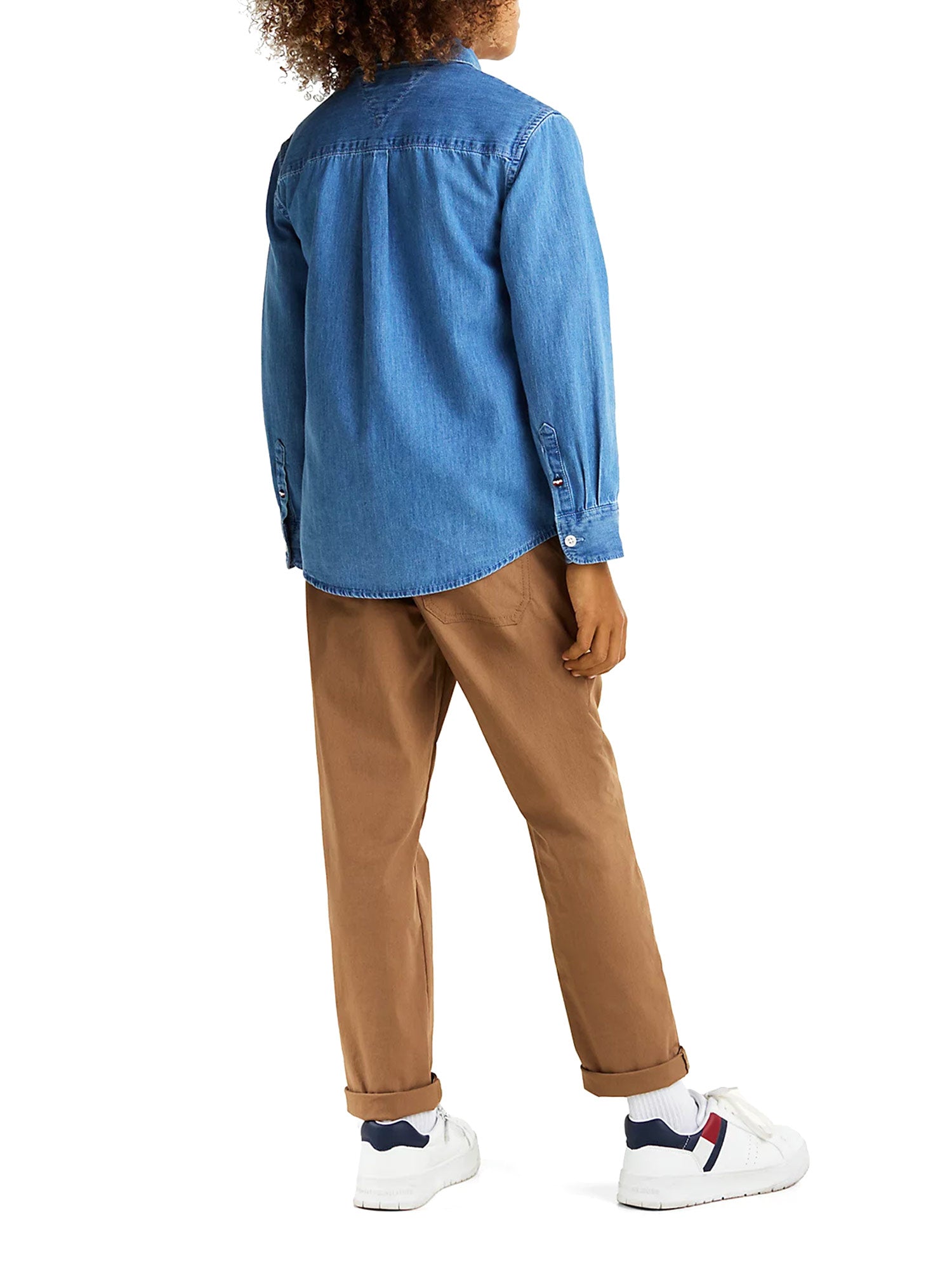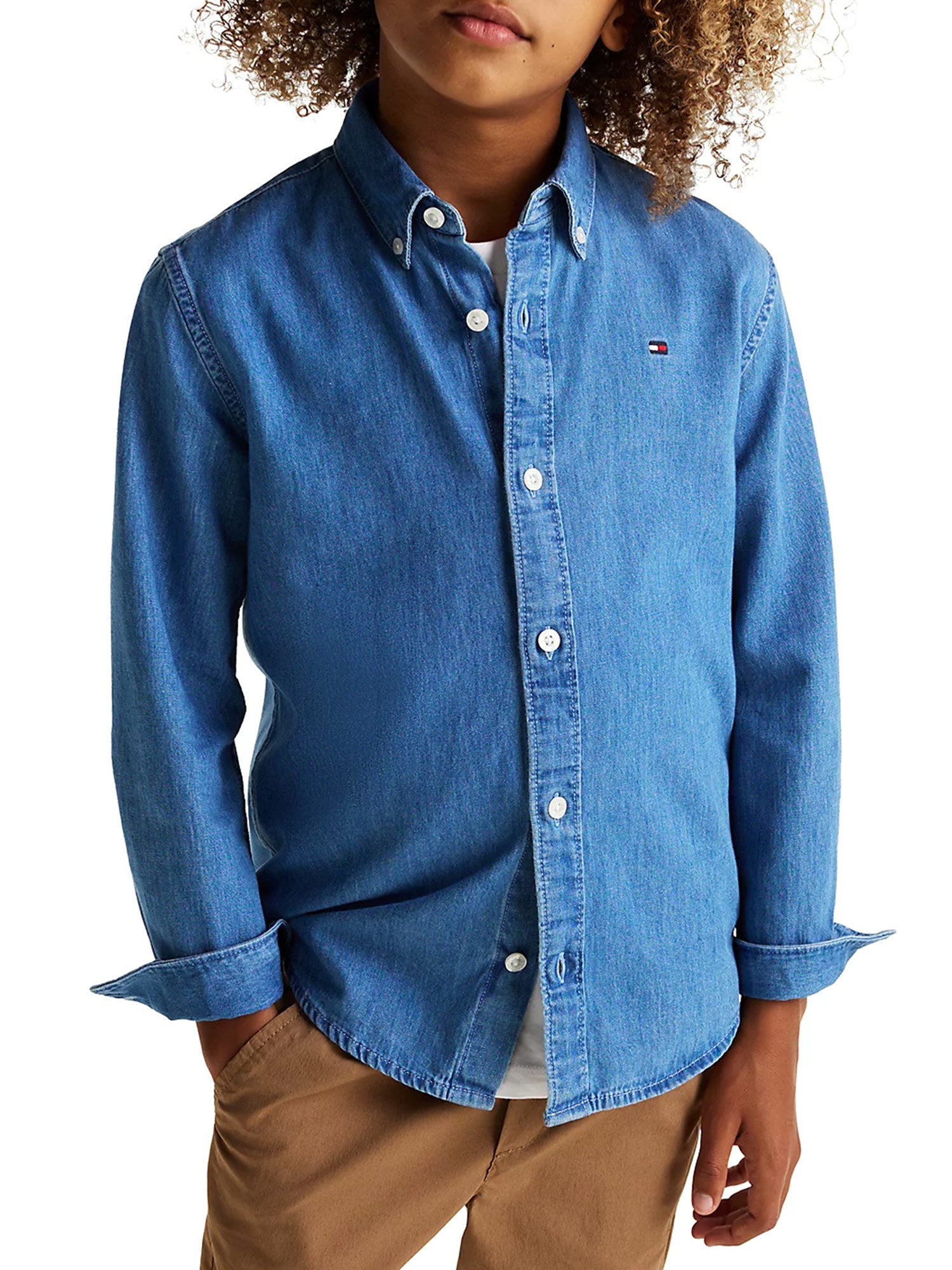 Camicia Tommy Hilfiger per ragazzi, in morbido denim chambray rifinita da dettagli di stile, come il colletto button down e la bandierina ricamata sul petto.